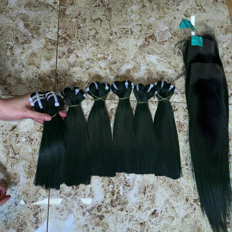 Extensions de cheveux humains alignés sur les cuticules Remy vietnamiennes brutes avec fermeture à lacet droit lisse et soyeux