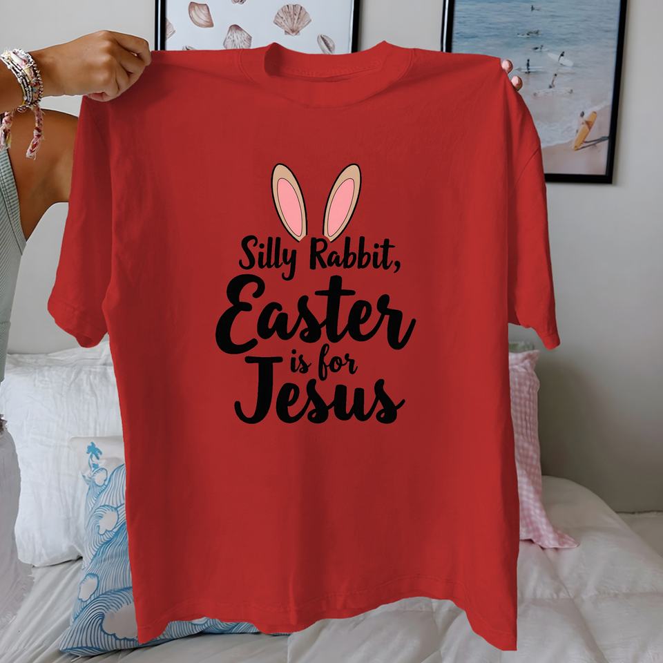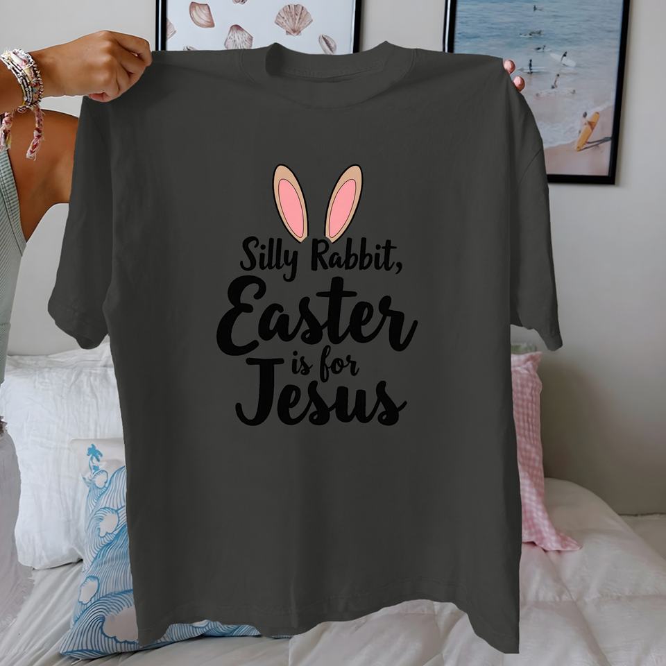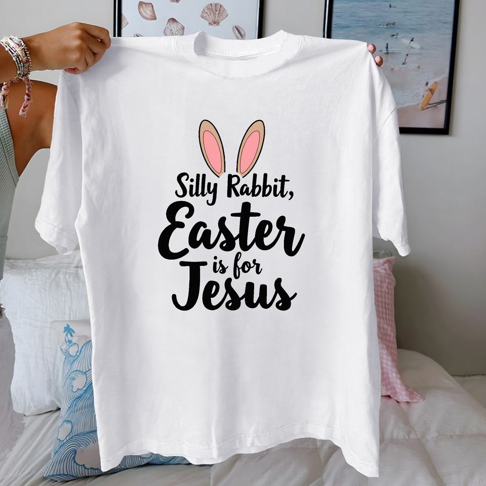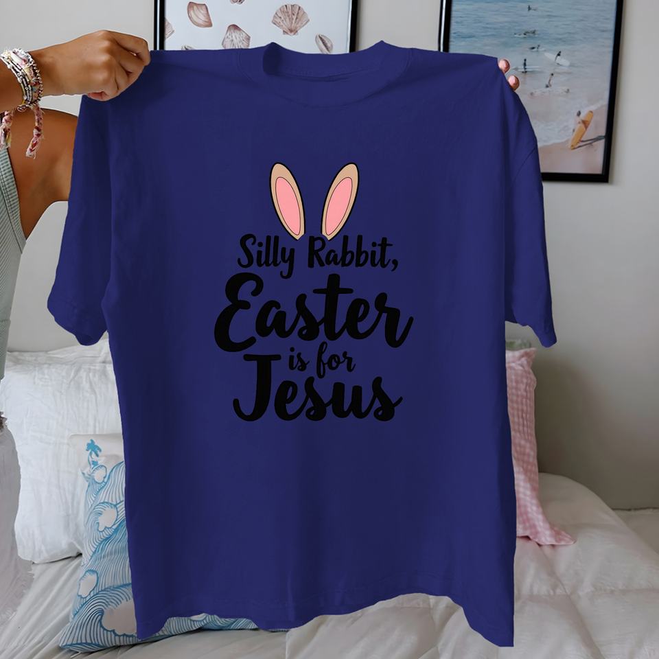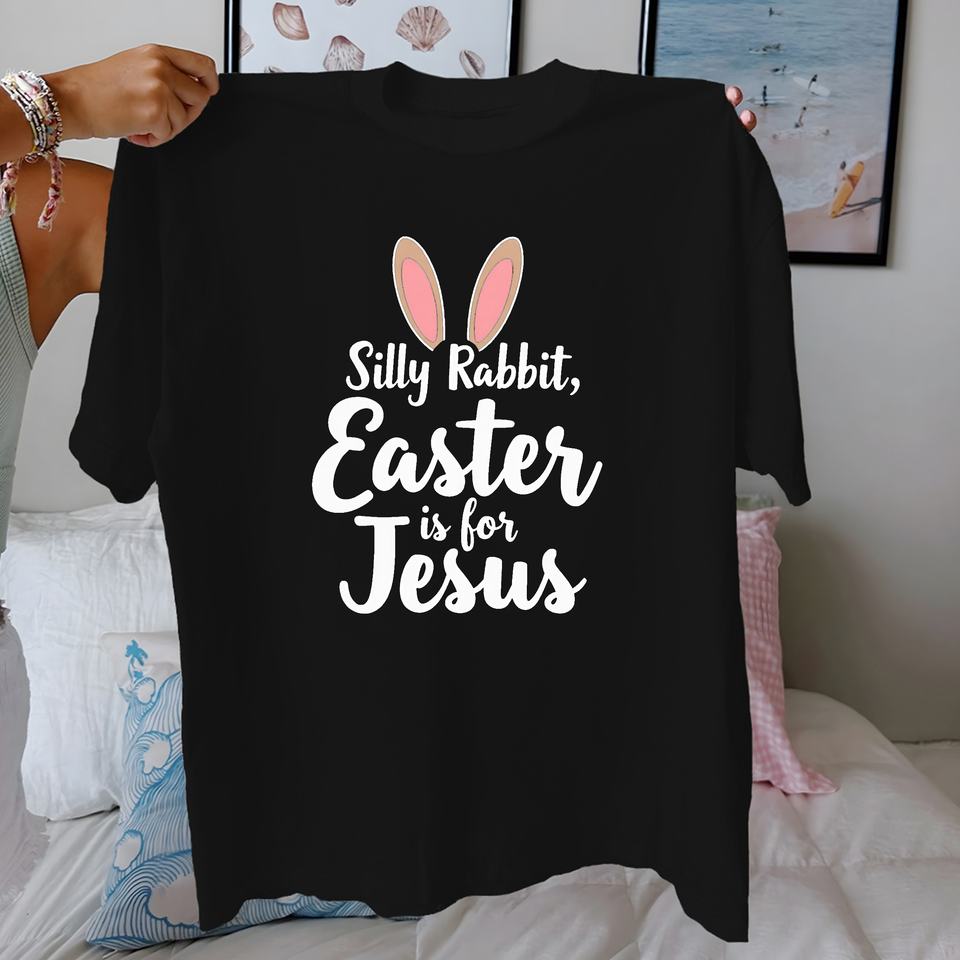 T-shirt pour femme en coton 100% avec imprimé tricoté décontracté « Silly Rabbit Easter Is for Jesus », coupe confortable
