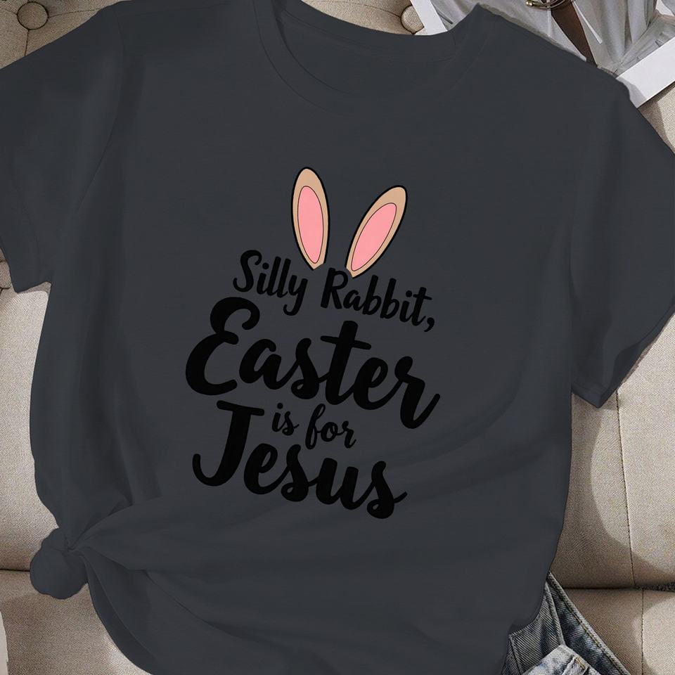 T-shirt décontracté imprimé pour femme Silly Rabbit Easter Is For Jesus avec motif oreilles de lapin, col rond, manches courtes, printemps-été