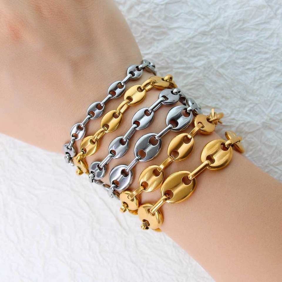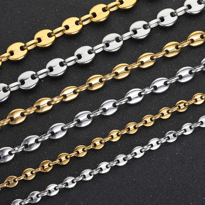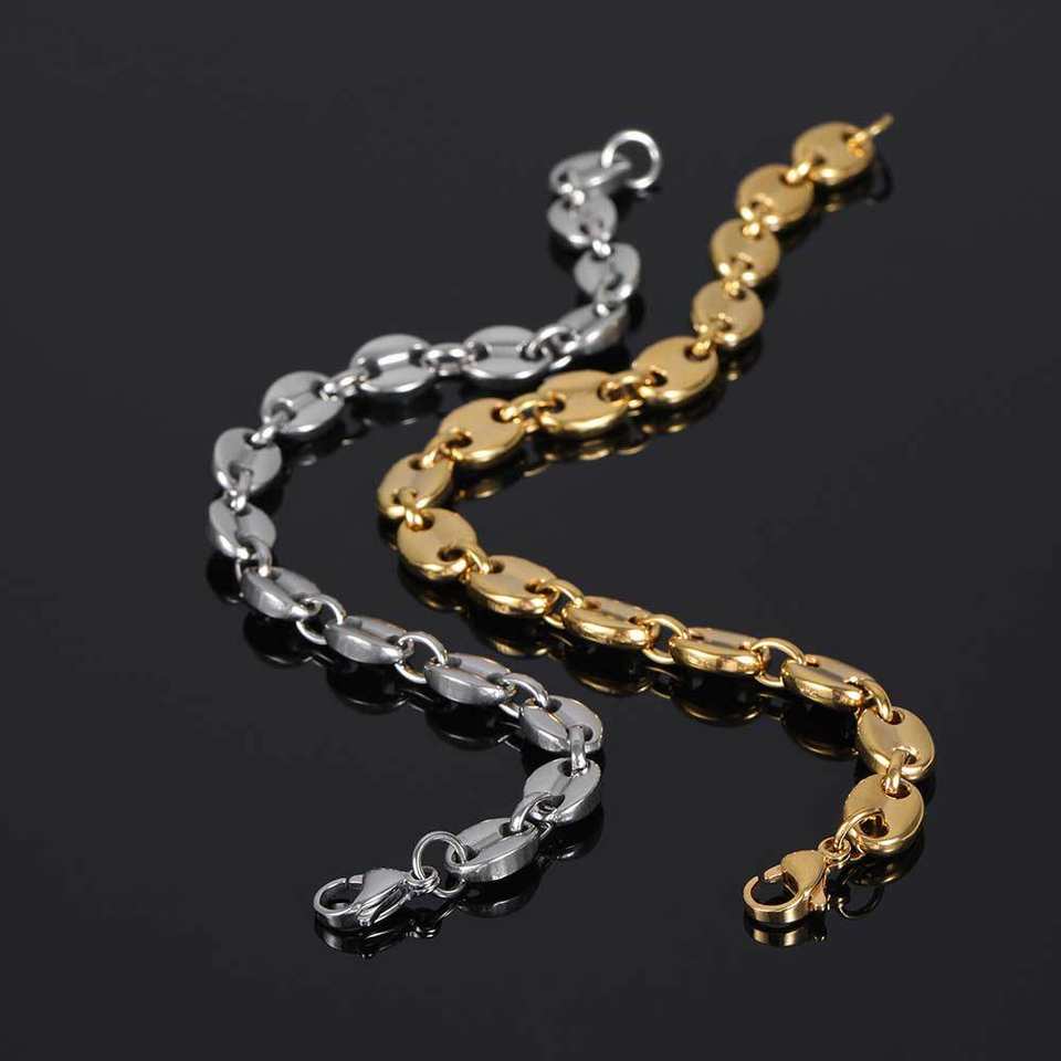 Bracelet en argent 18K or acier inoxydable homme graines de café haricots porc nez chaîne Moissanite Cubain chaîne collier