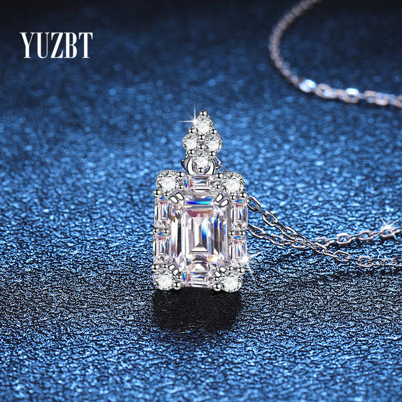 Collier pendentif de mariage en argent 925 Original, taille émeraude passée, 1 Carat de couleur D, Moissanite, bijoux en pierres précieuses pour femmes