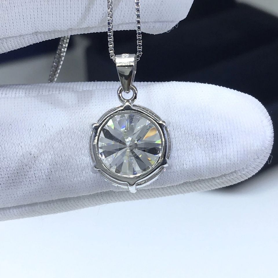 Collier pendentif en argent 925 avec diamant original testé, coupe ronde brillante, 5 carats, moissanite étincelante de couleur D, bijoux en pierres précieuses