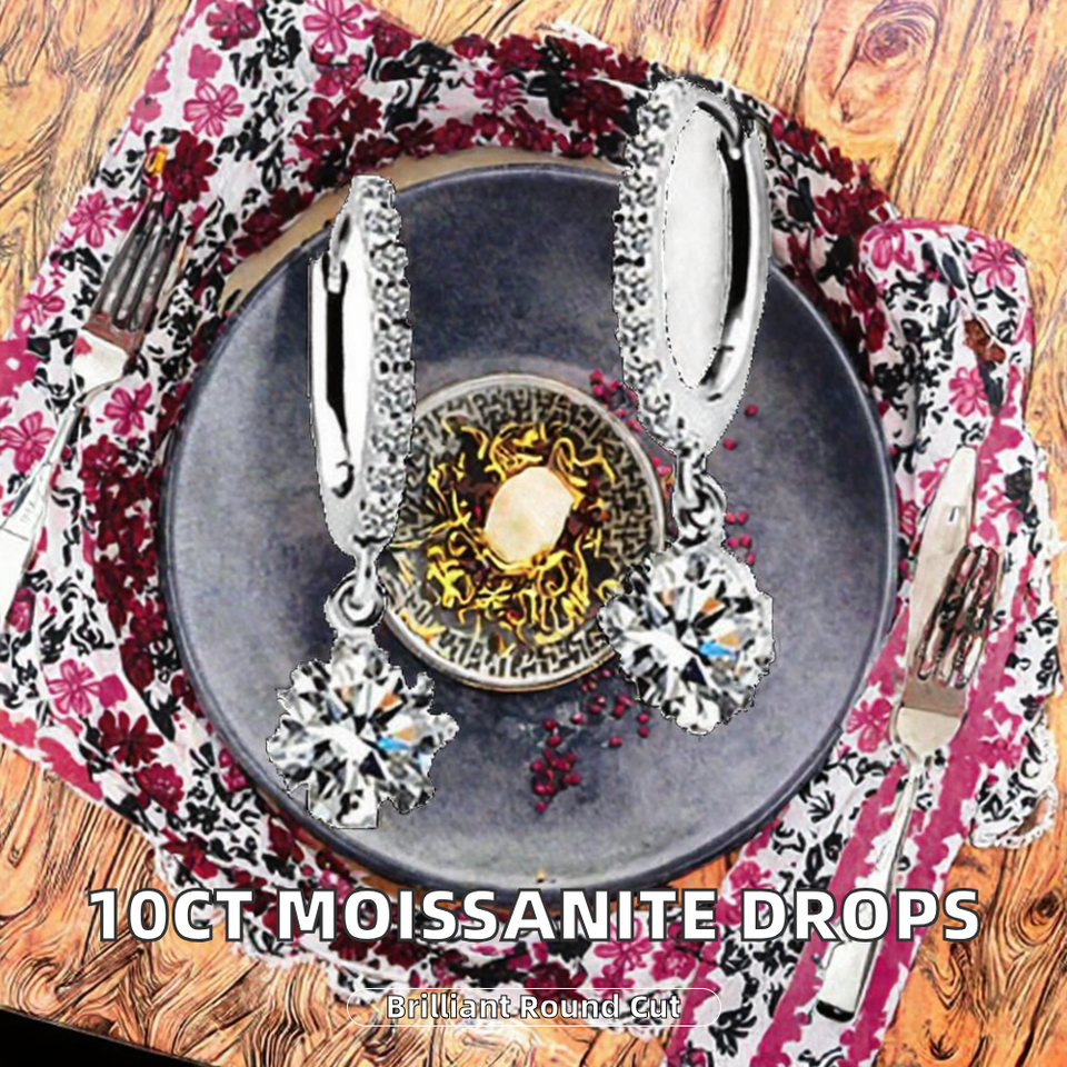 Boucles d'oreilles clous romantiques en argent 925 plaqué rhodium, moissanite taille brillant de 10 carats au total, couleur D, 4 griffes, testées