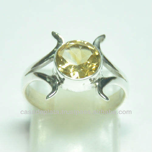Bague de mariage unisexe en argent sterling 925 Design classique avec pierre précieuse citrine ronde coupe brillante élégante pour les fêtes