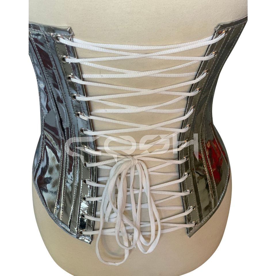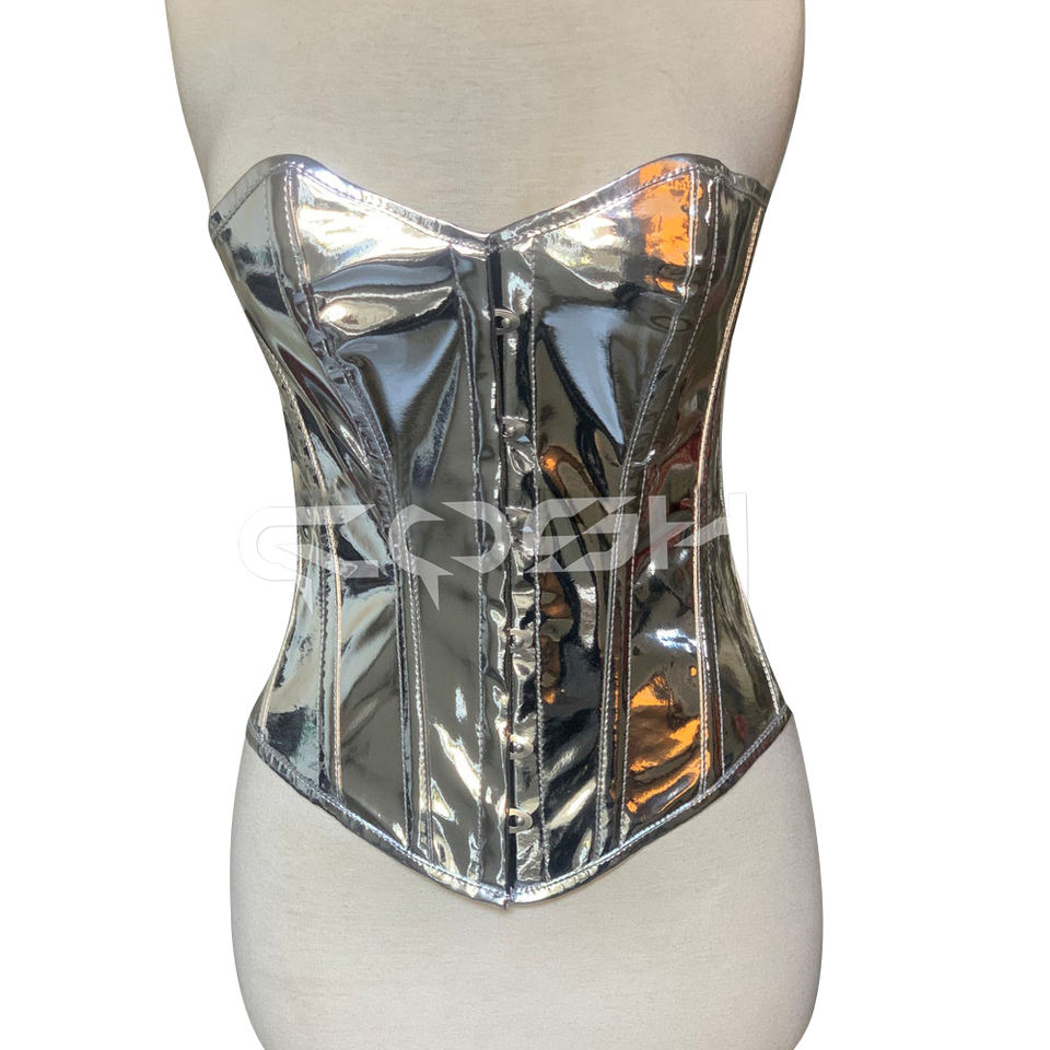 Corset Overbust en PVC Argenté Respirant avec Rivets et Fermeture à Baleines, Haute Compression pour Amincissement de la Taille, Idéal pour les Soirées et la Mode
