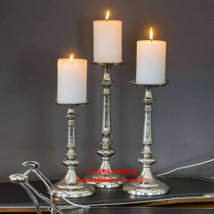Bougeoir argenté avec verre pour décoration de table de mariage Vaisselle nickelée à la main T Light Candle Holder Pillar