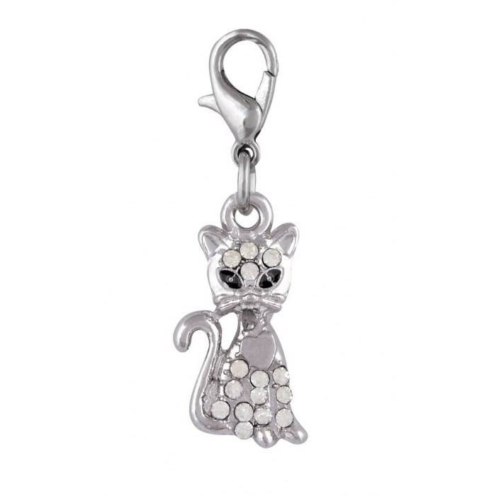 Silver Cat Charm Pendant With Rhinestones For Jewelry Making And Fashion Accessories