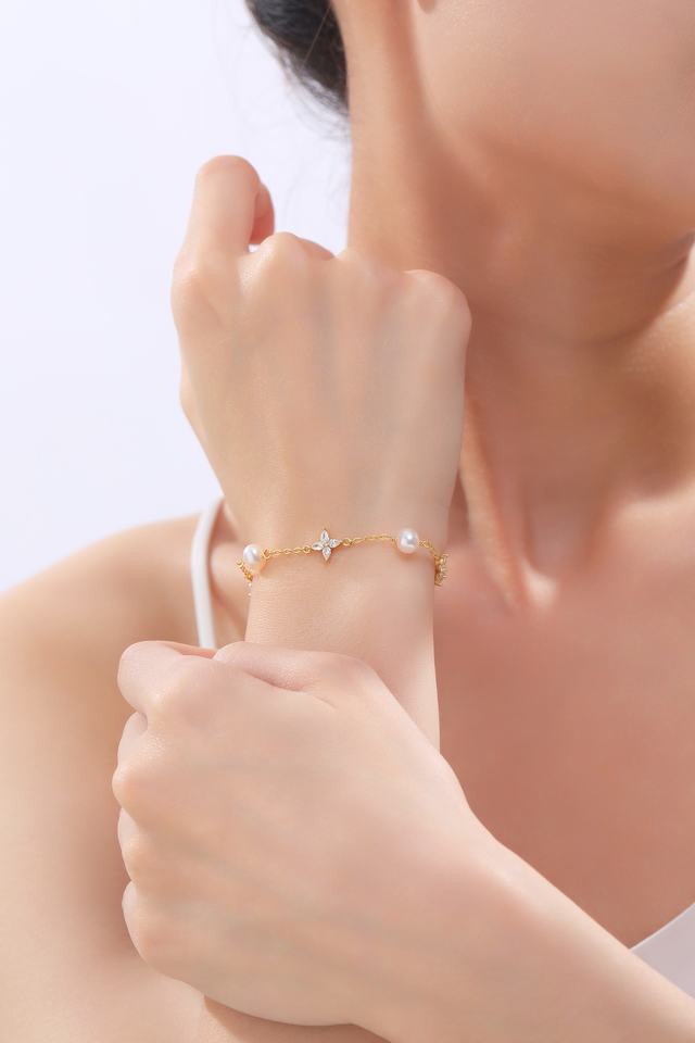 Product Name:18K Gold-Plated White Pearl 925 Silver Woman Bracelet