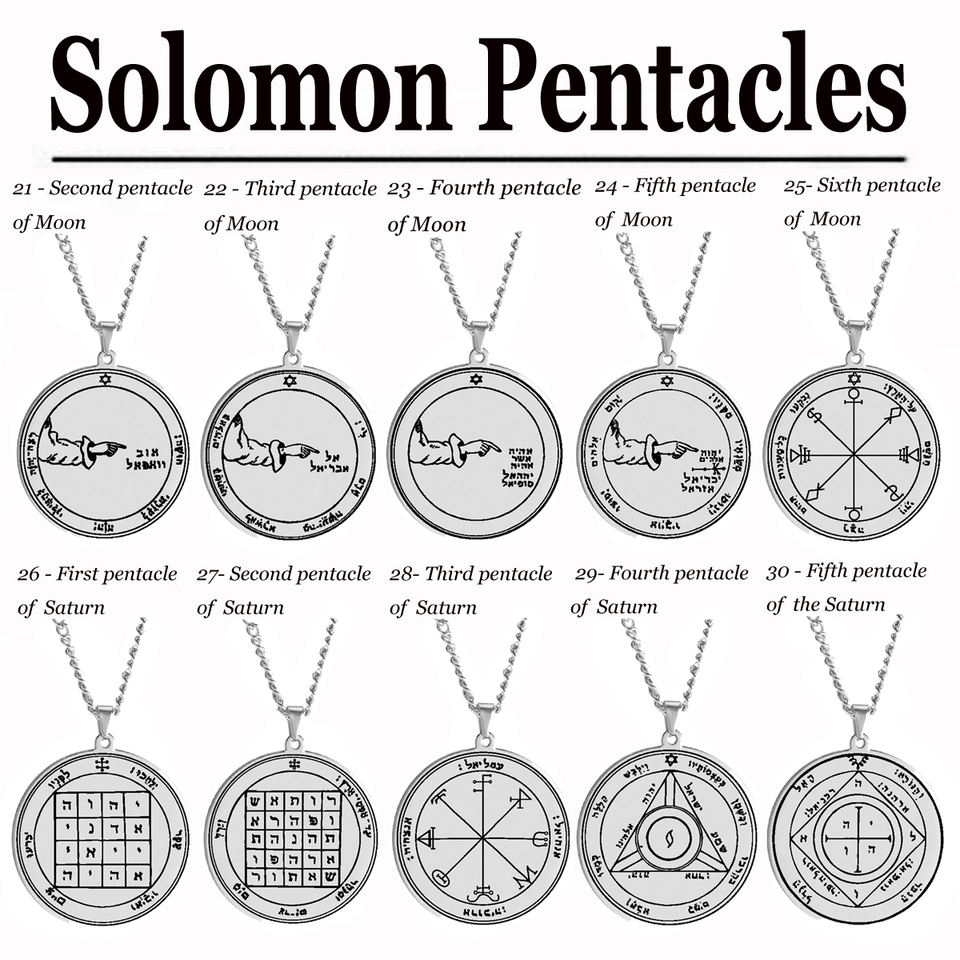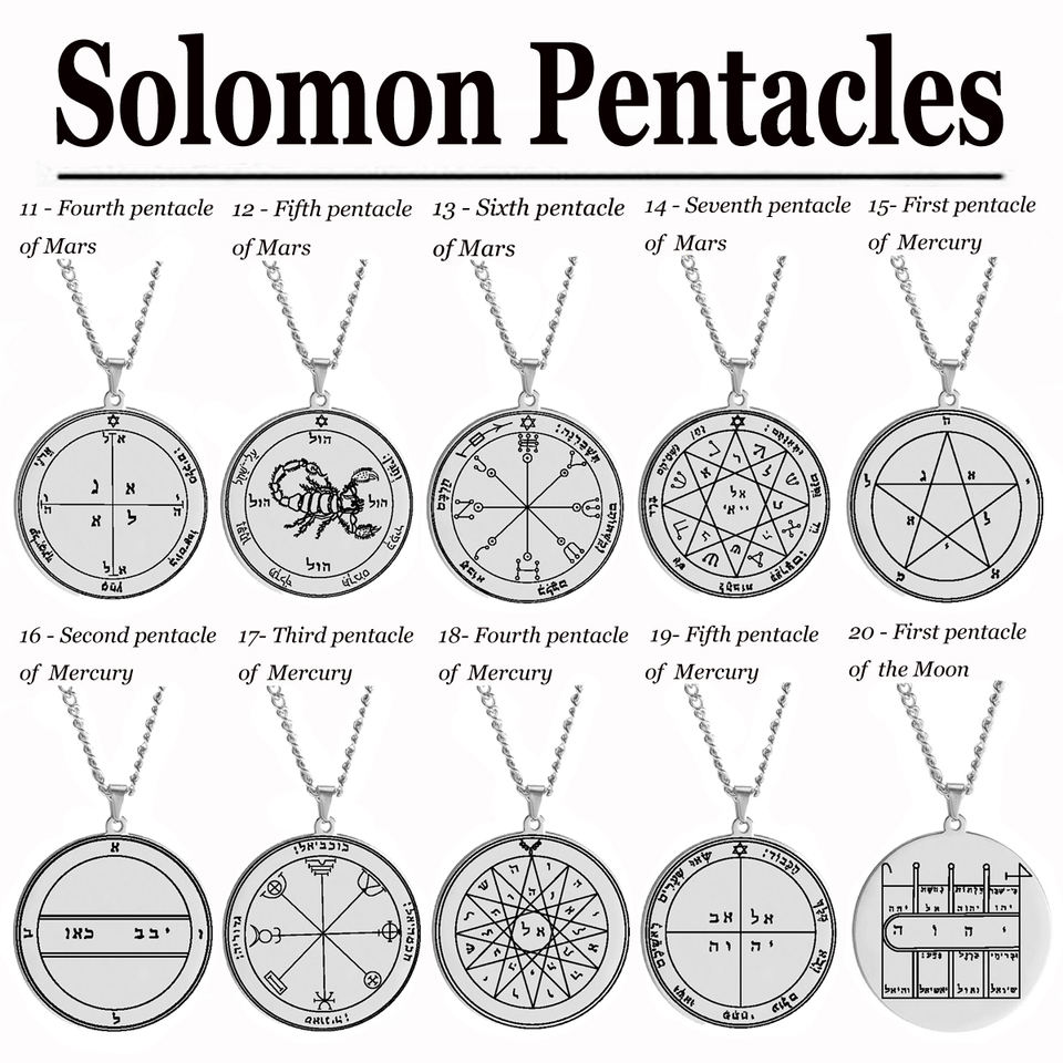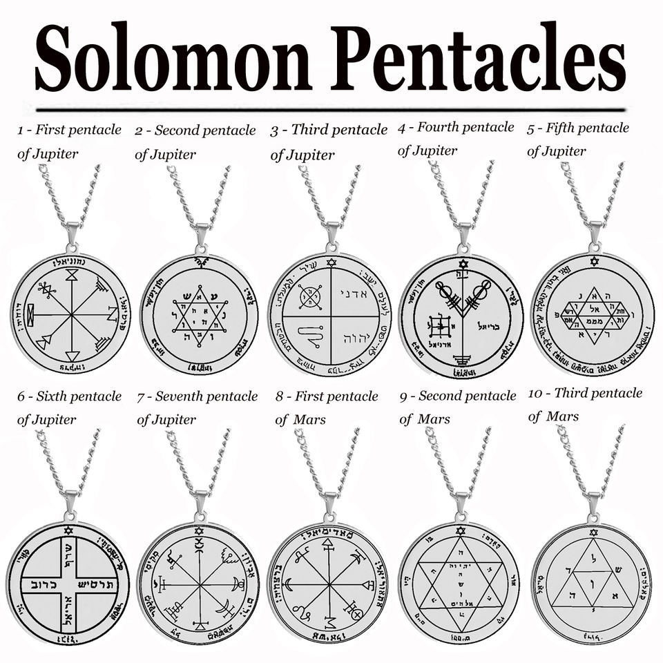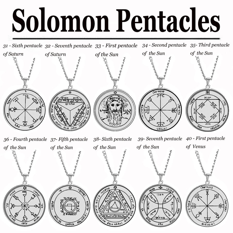 Silver Color 44 Solomon Pentacles Seal of Jupiter Mars Mercury Moon Saturn Sun Venus Talisman Pendant Stainless Steel Necklace