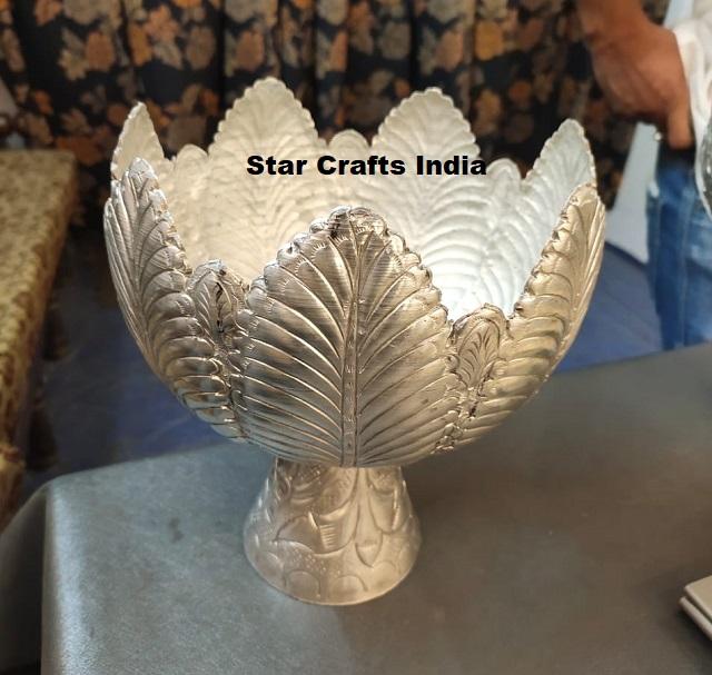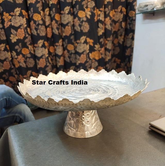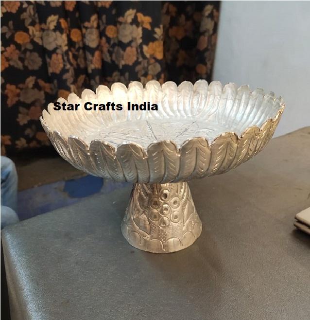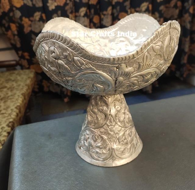 Bol décoratif de service de nourriture de couleur argentée en acier inoxydable fait design attrayant design martelé avec base en laiton doré