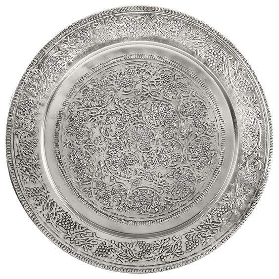Assiette de service en aluminium de couleur argent, émaillée, écologique, de haute qualité, sans danger pour les aliments, design martelé, 12' 13"