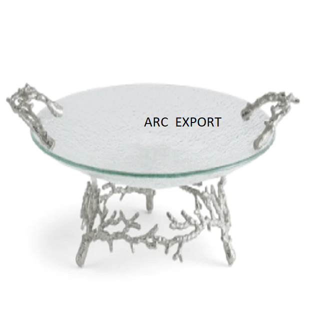 Présentoir à gâteau unique en métal transparent de couleur argentée Décoration de style standard Décoration moderne Support à gâteau plaqué