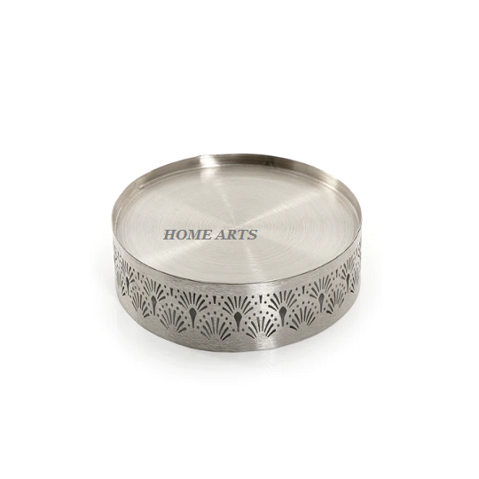 Plateau de service de nourriture de couleur argentée plateau de service de bonbons de forme ronde en acier inoxydable de qualité supérieure pour un usage domestique