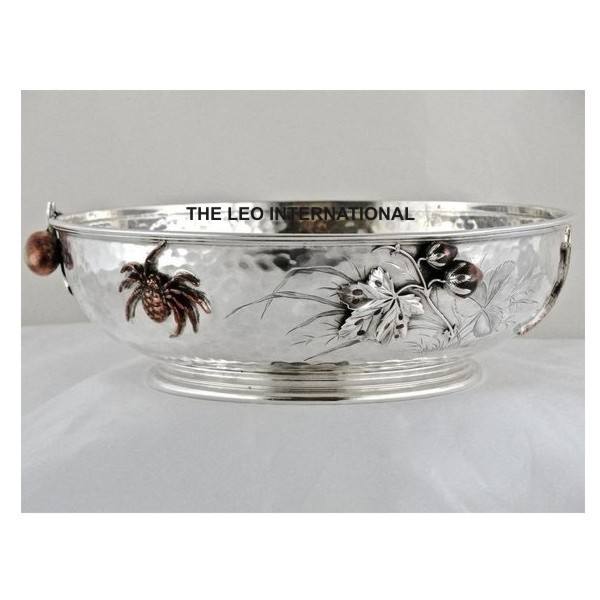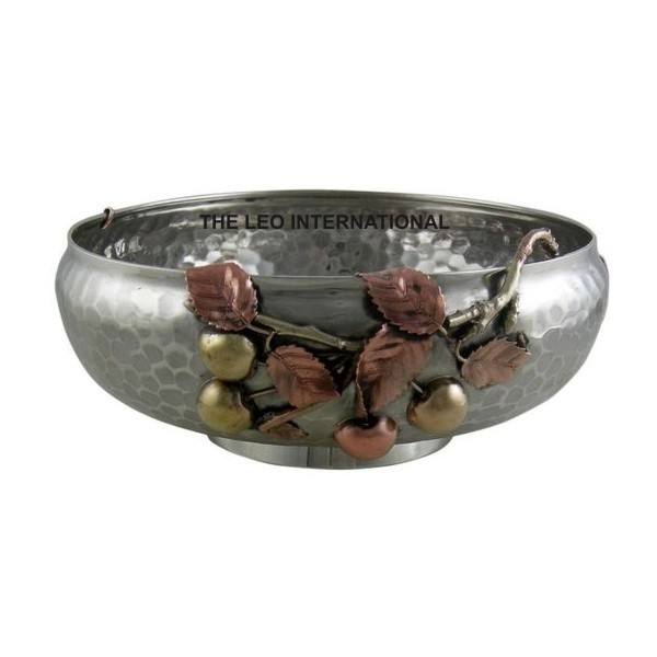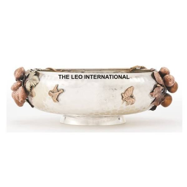 Bol décoratif en aluminium de couleur argentée, texture martelée, forme de feuille, pour la cuisine, la salle à manger, la table