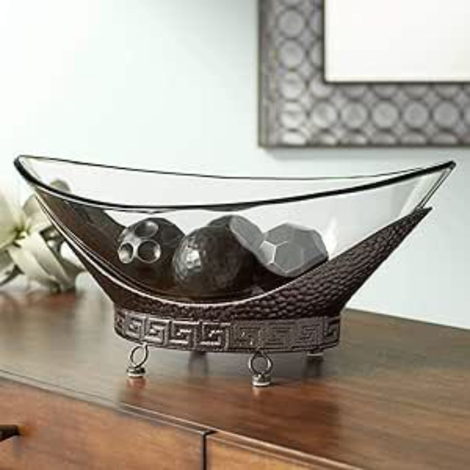 Bol design unique en verre et base métallique couleur argent, idéal pour la maison, l'hôtel, comme centre de table, ou pour servir les aliments, ustensile de cuisine.