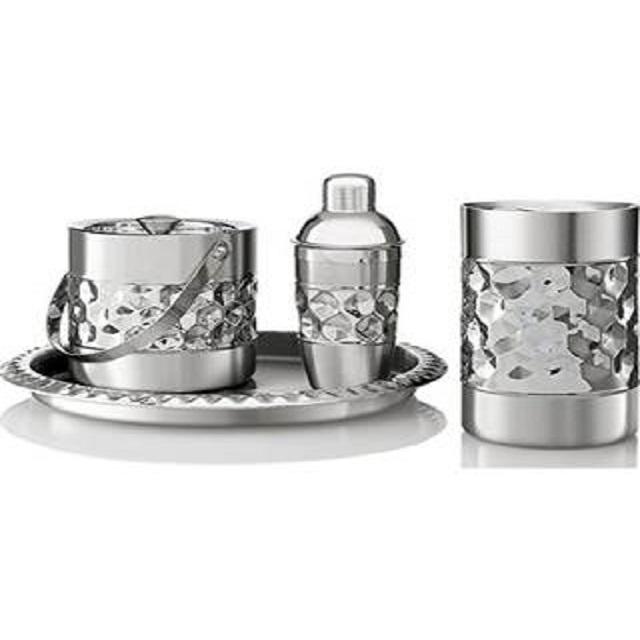 Ensemble de bar en acier inoxydable couleur argent matériau poli brillant hôtel et maison salle de bain vaisselle décoration servant pour bar pub et fête