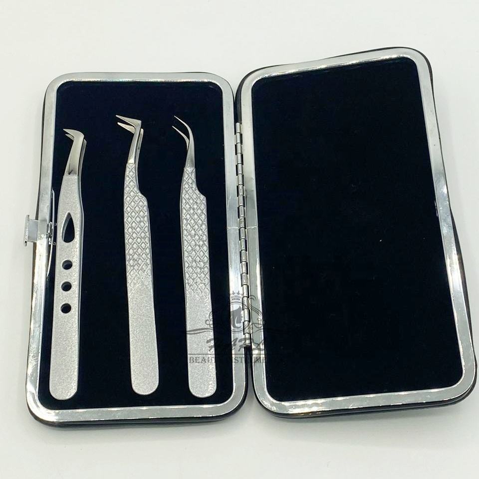 Pince à épiler d'extension de cils multi-paillettes de couleur argentée courbée/botte de tir/pince à épiler de Volume russe pour l'extension de cils