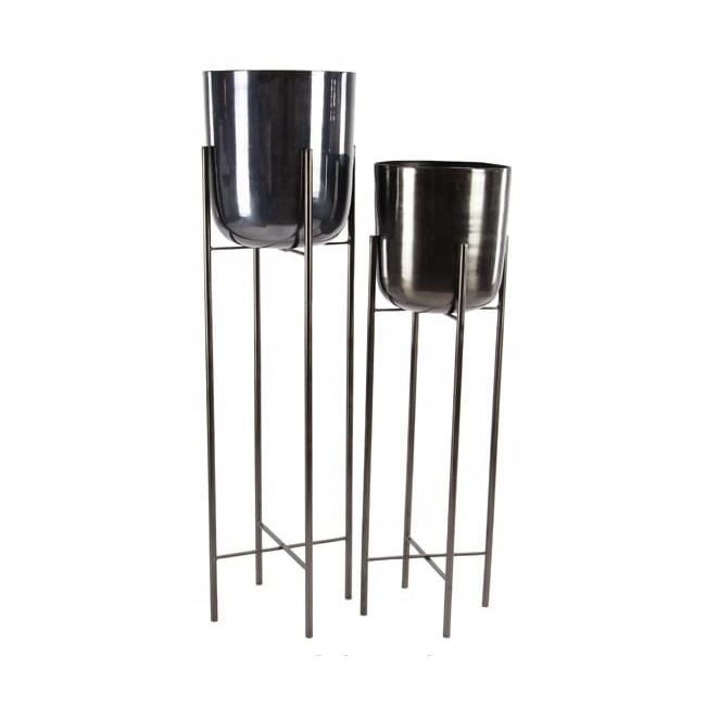 Lot de 2 jardinières en métal contemporain argenté avec support pour la décoration de la maison et du jardin Jardinières modernes en métal Pots de fleurs à bas prix