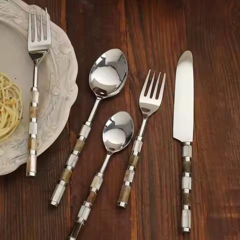Ensemble de couverts en argent avec un design de poignée unique, couverts élégants parfaits pour les dîners à domicile, les fêtes, les hôtels, les mariages et les événements spéciaux