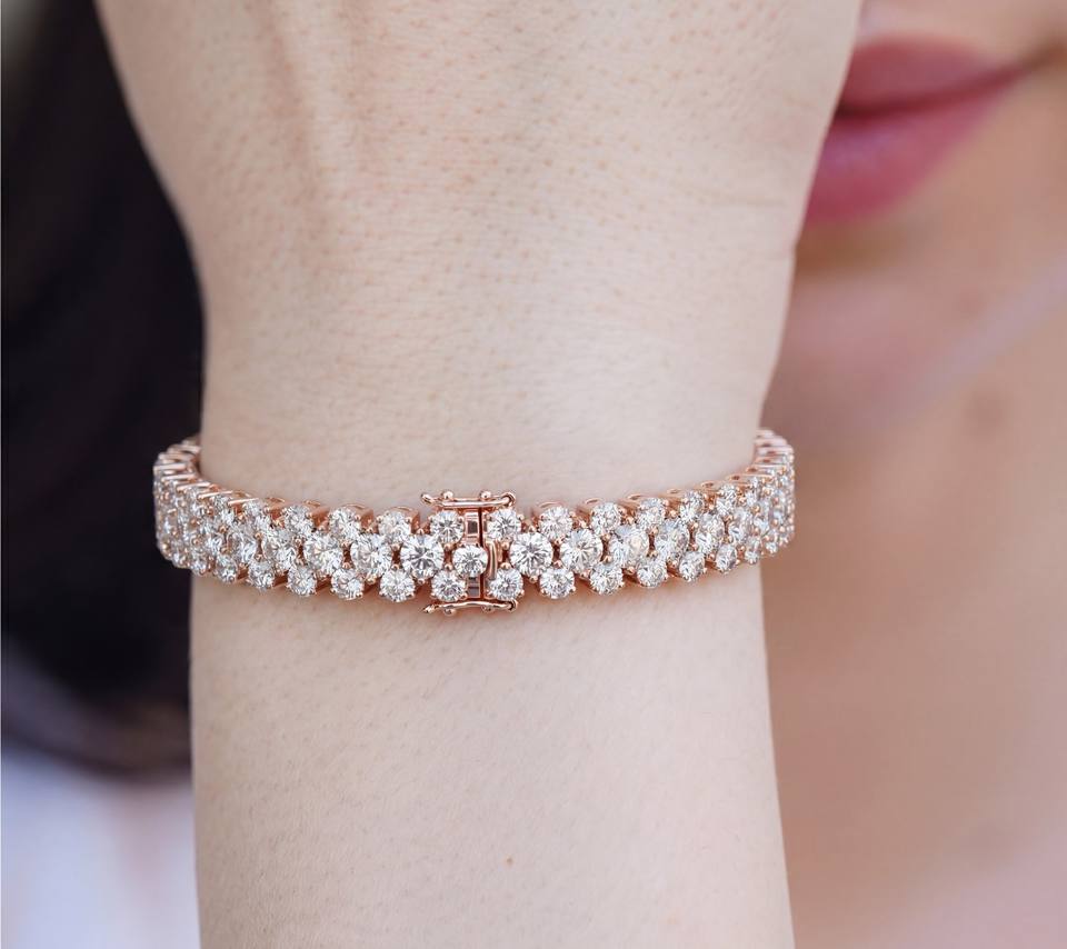 Bracelet élégant en argent sterling avec double rangée de diamants de laboratoire, bijoux de luxe étincelants pour femmes, mariage, fête