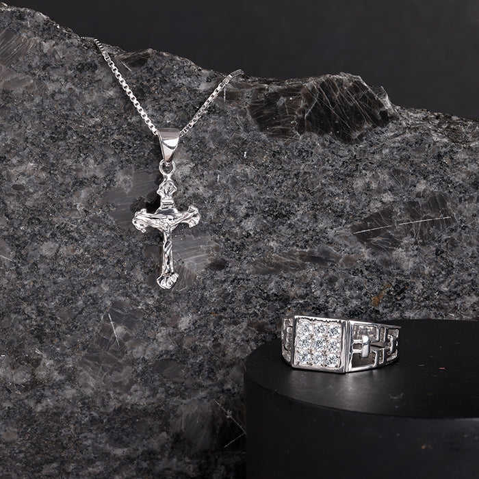 Silver Faith and Sparkle Fine Jewelry Set for Him Emerald Cut Zircon and Diamond Gold Plated Pearl for Wedding or Party