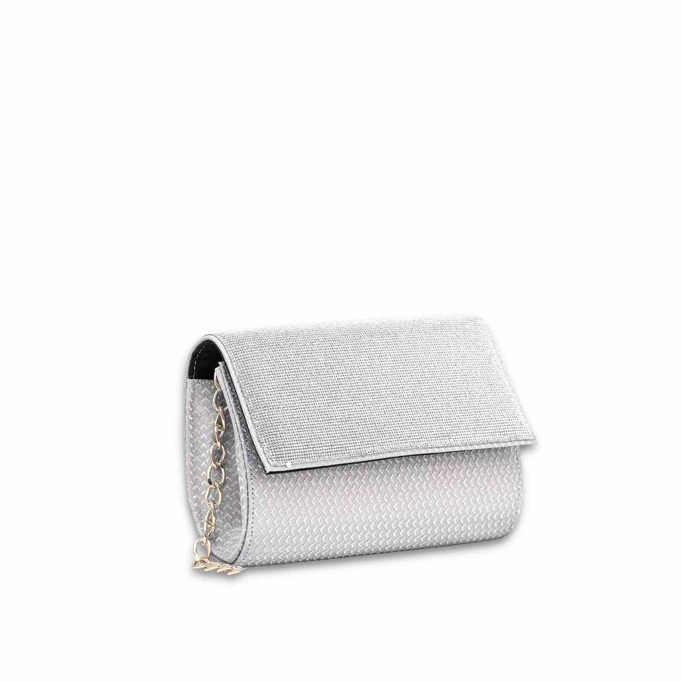 Pochette fantaisie argentée P15348 sac de soirée en résine avec diamant carré marbre motif perle et chaîne décoration doublure acrylique