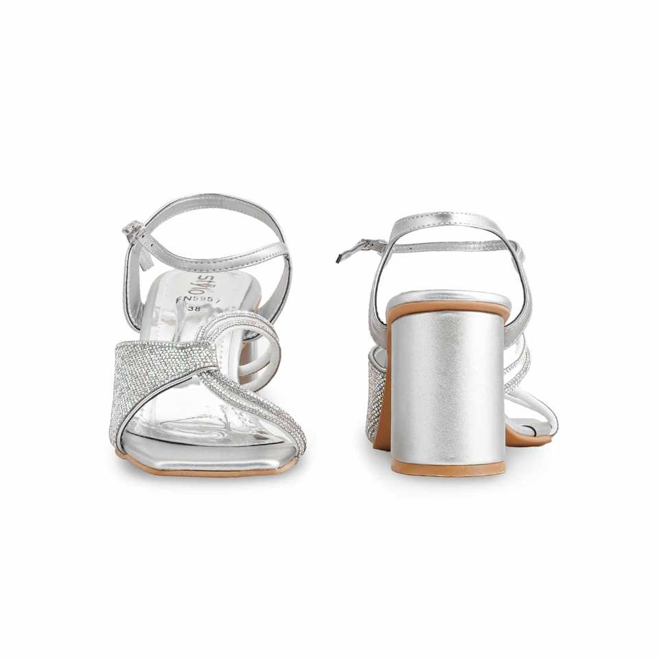 Sandale à talon fantaisie argentée FN5957