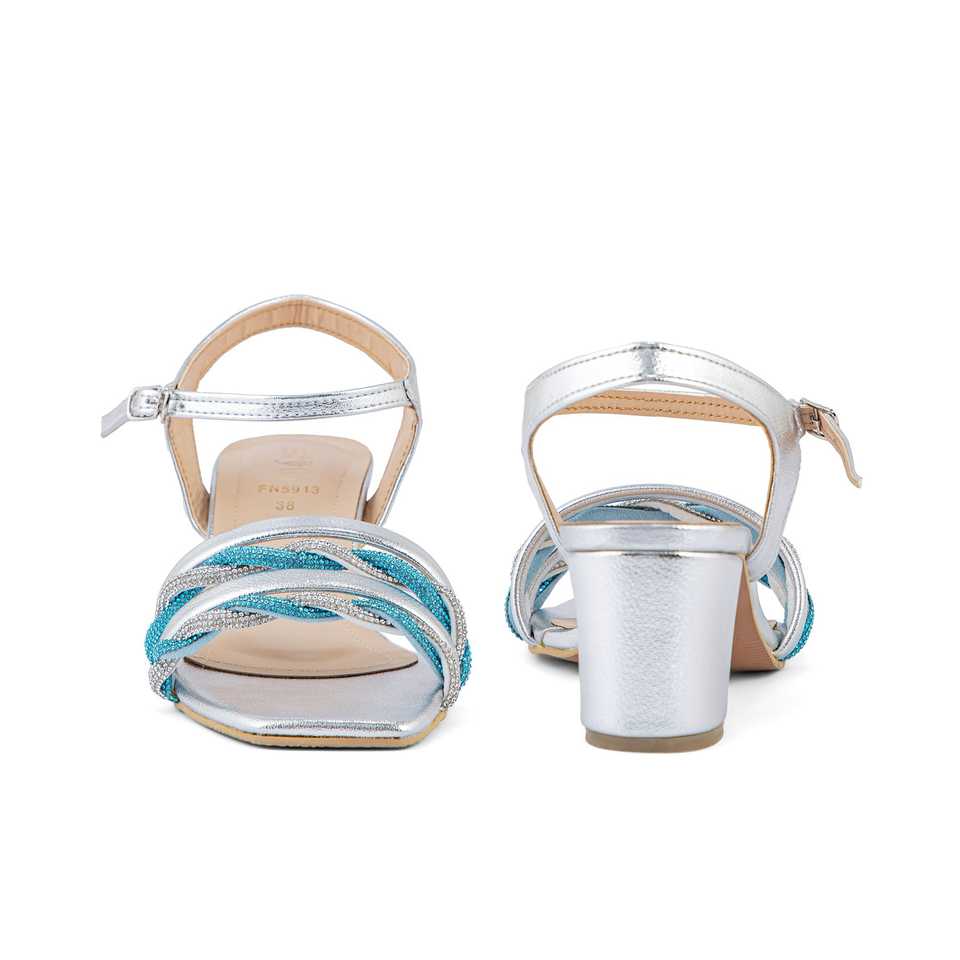 Sandales à talons fantaisie argentées à bout ouvert pour femmes à la mode à lacets FN5913 pour les mariages et les fêtes