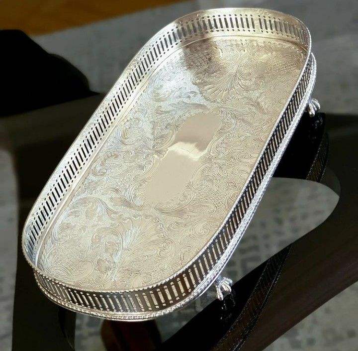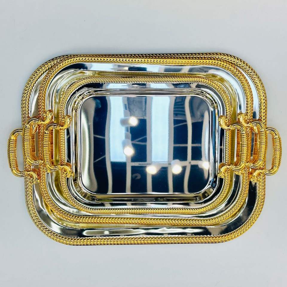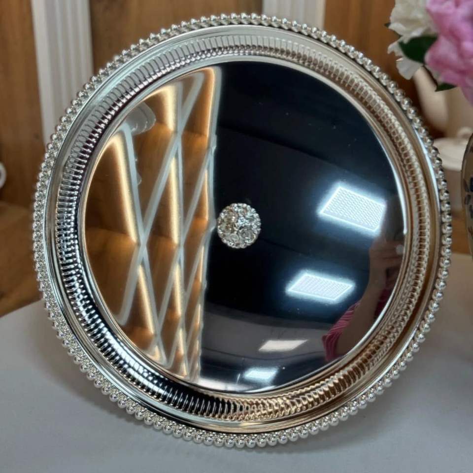 Plateau en laiton avec revêtement argenté, base en laiton massif, bord lisse, finition laiton et or, pour cadeaux et hôtellerie