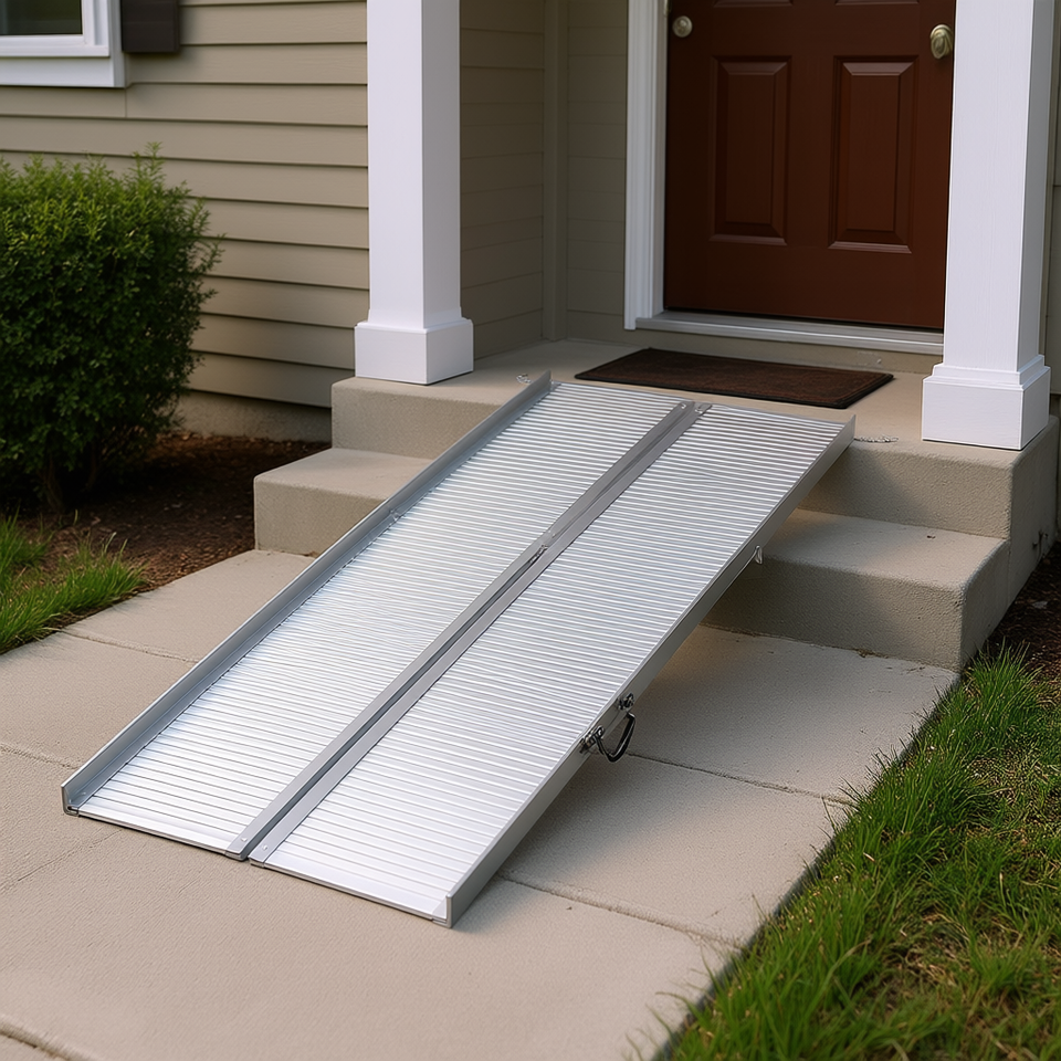 Rampe d'accès pour fauteuil roulant finition argentée, 10 pieds, surface nervurée en acier, pliable, robuste, pour entrée de maison