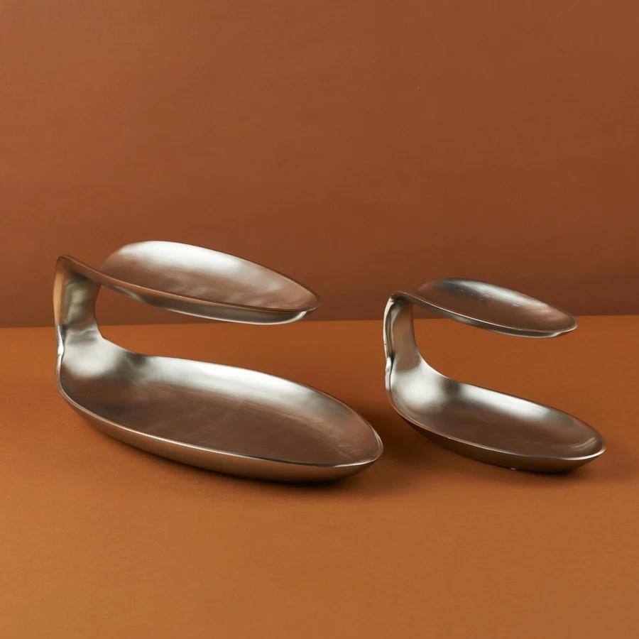 Plateau de service à deux niveaux en métal au design arabe fini argenté Ensemble spécial de 2 plateaux de service de nourriture au design élégant du Moyen-Orient