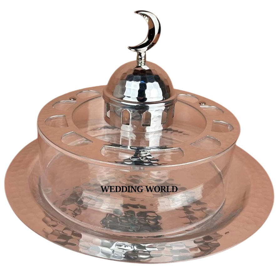 Plateau à chocolat martelé en métal avec couvercle en acrylique Plateau à chocolat fait main de haute qualité Forme ronde Designer Nouveau plateau à chocolat