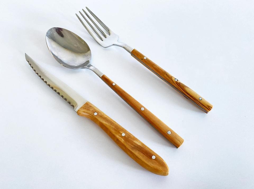 Ensemble de couverts finis argentés avec manche en bois mince Couverts élégants en acier inoxydable pour salle à manger, cuisine, fête et restaurant
