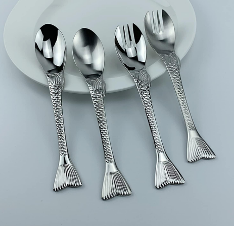 Poignée en forme de poisson fini argent couverts en acier inoxydable cuillères métalliques fourchettes maison hôtel restaurant service de restauration