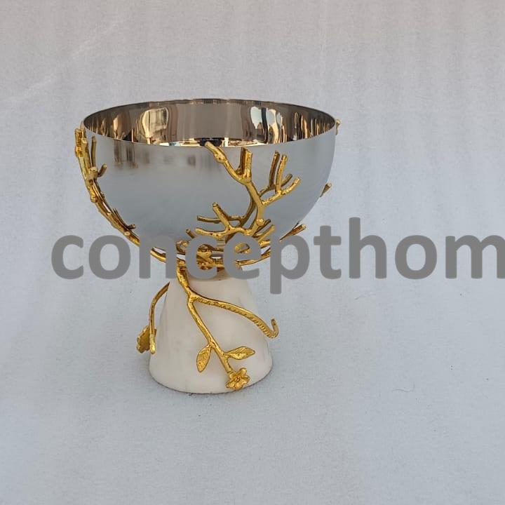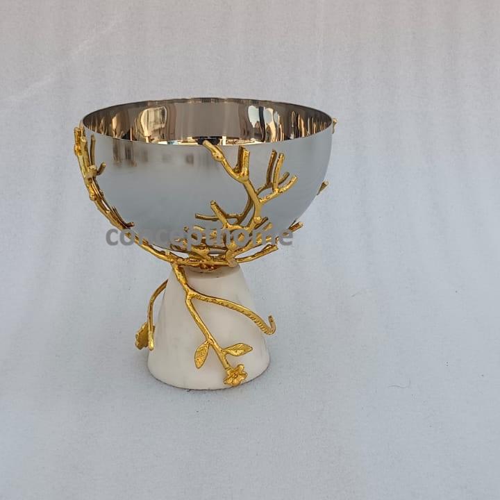 Bol décoratif en céramique et porcelaine, fait main, écologique, pour la présentation, finition argentée brillante, design unique