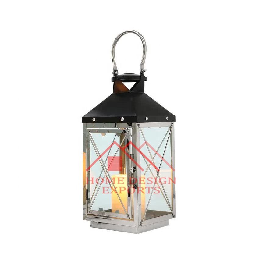 Lanterne suspendue en acier inoxydable fini argent, design arabe le plus vendu, lanterne de table et de sol en acier poli de luxe