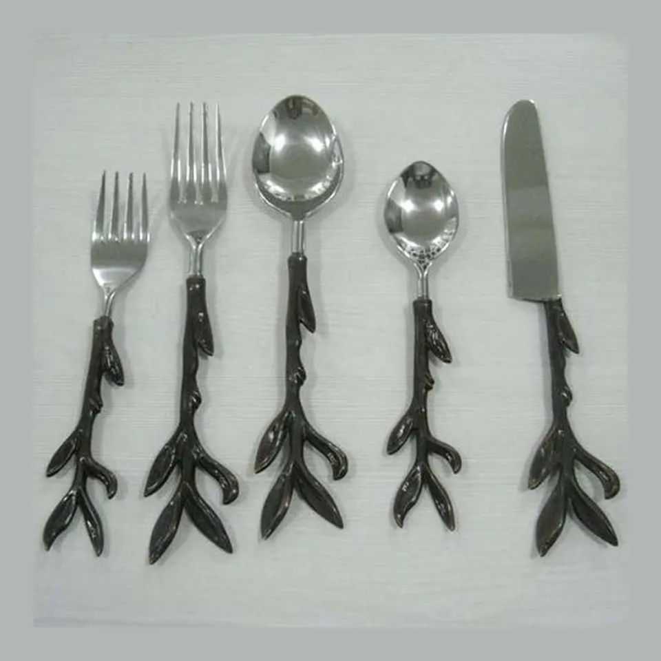 Ensemble de couverts en acier inoxydable avec finition argentée, design magnifique, parfait pour la vaisselle de mariage et l'utilisation en cuisine, en provenance d'Inde