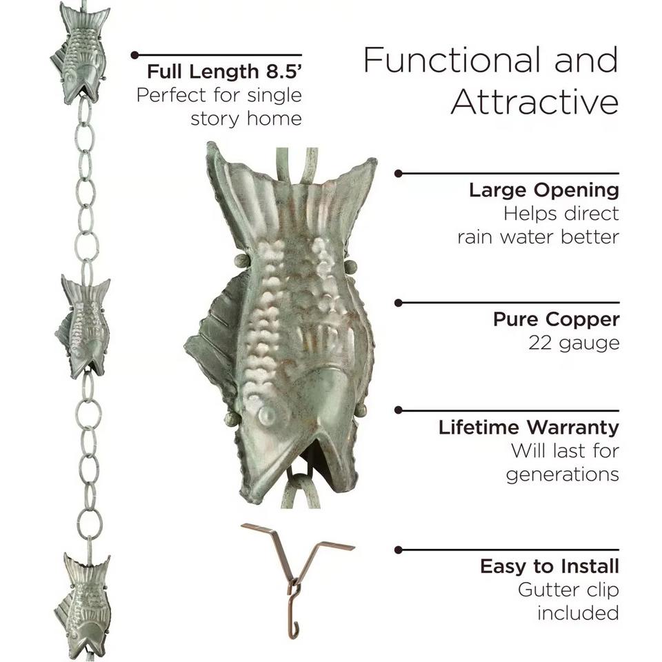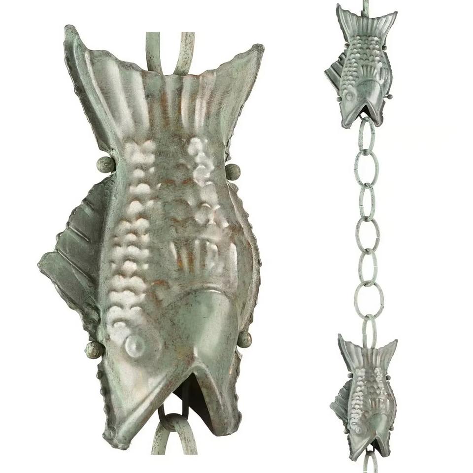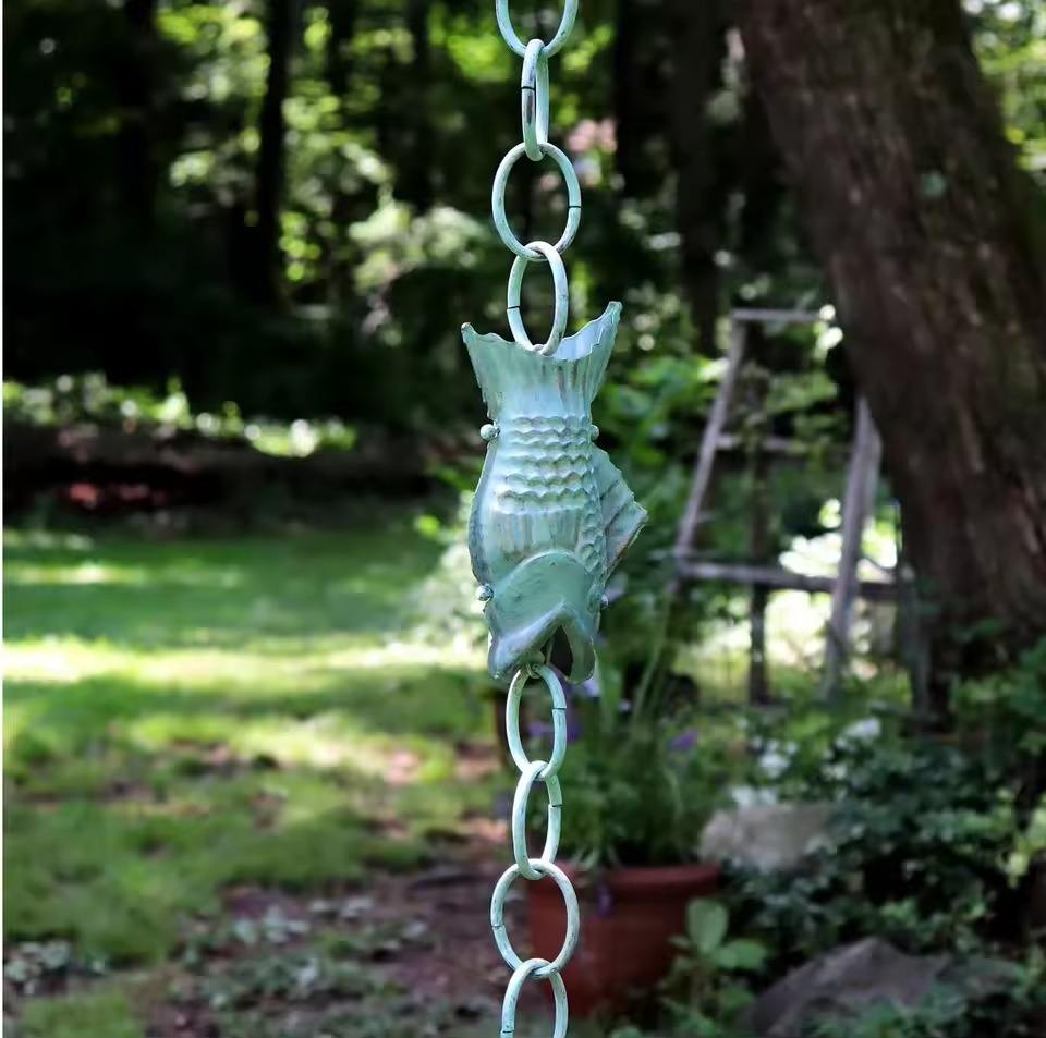 Chaînes de pluie en métal en forme de poisson argenté, ajoute une ambiance aquatique ou aquatique-marine aux jardins et espaces extérieurs, vente en gros depuis l'Inde