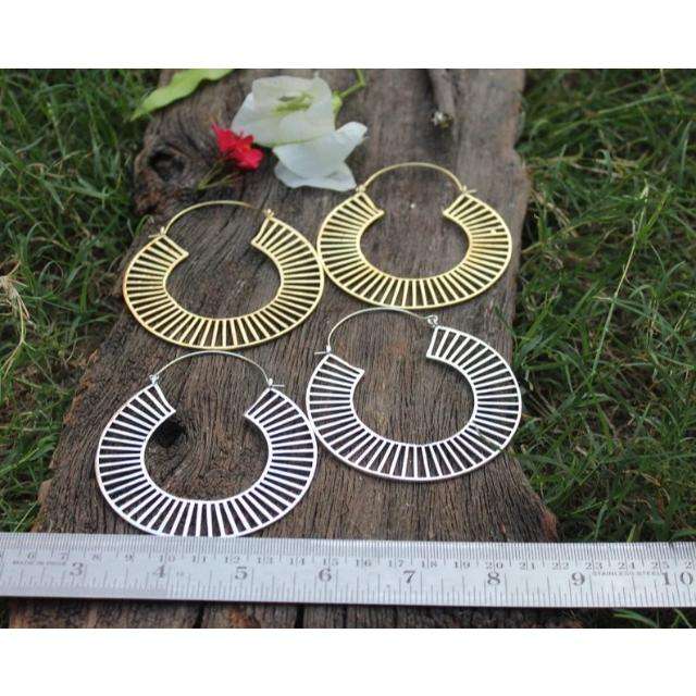 Silver & Gold Plating Ethnic Tribal Hoop Earrings Boho Style Stainless Steel Jewelry Gift for Her