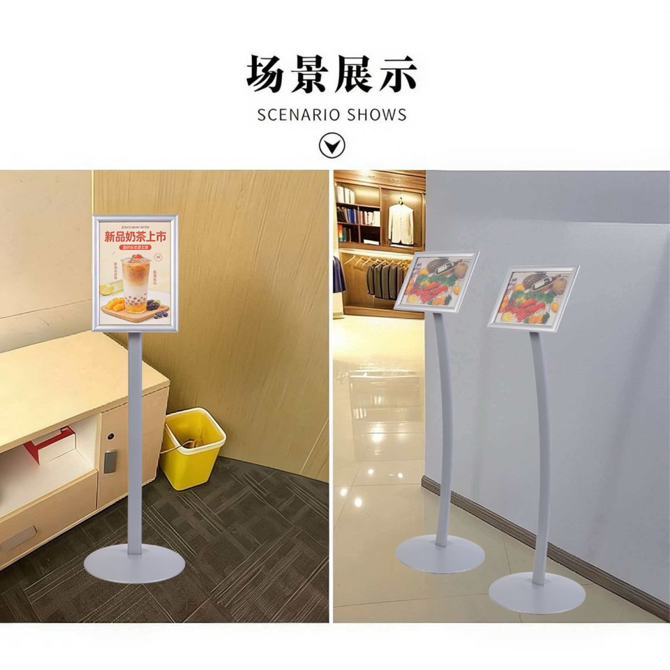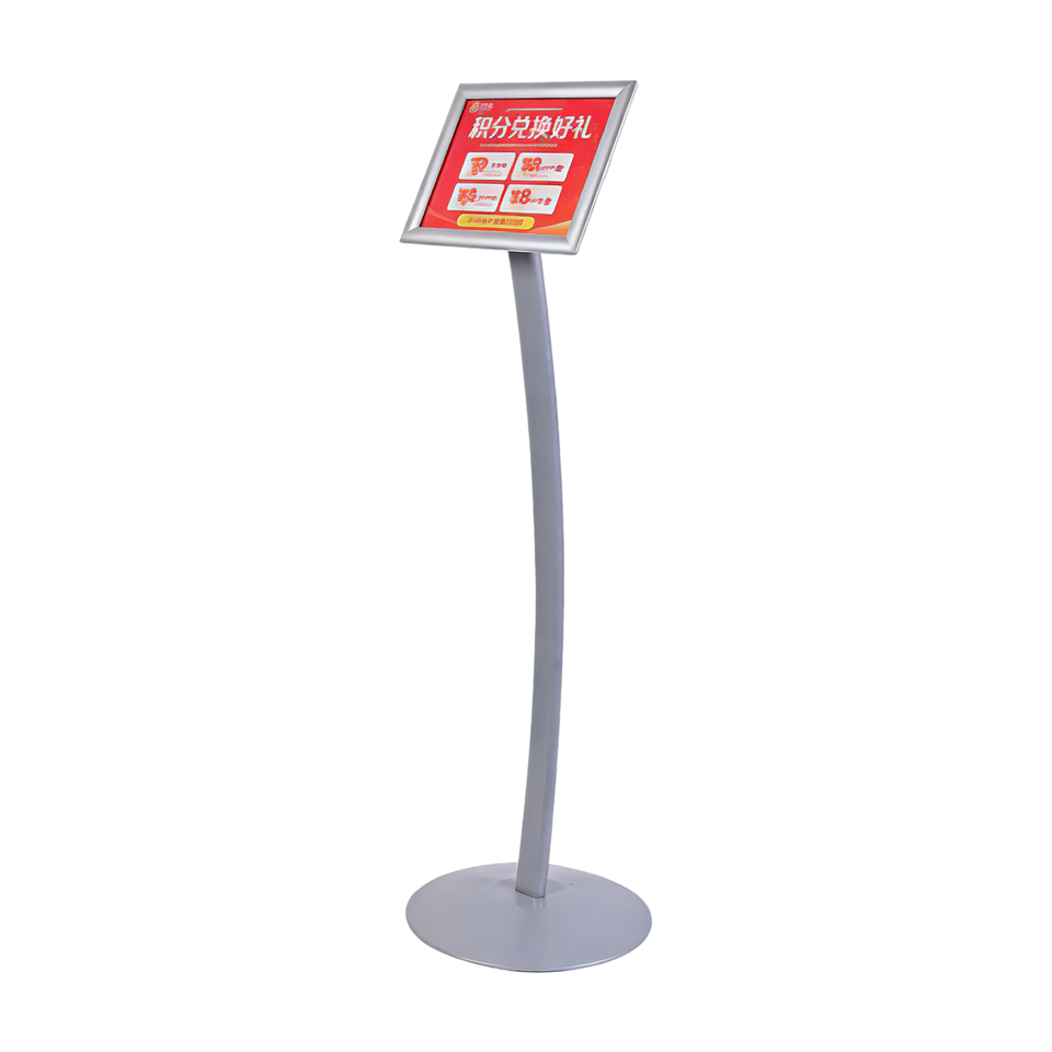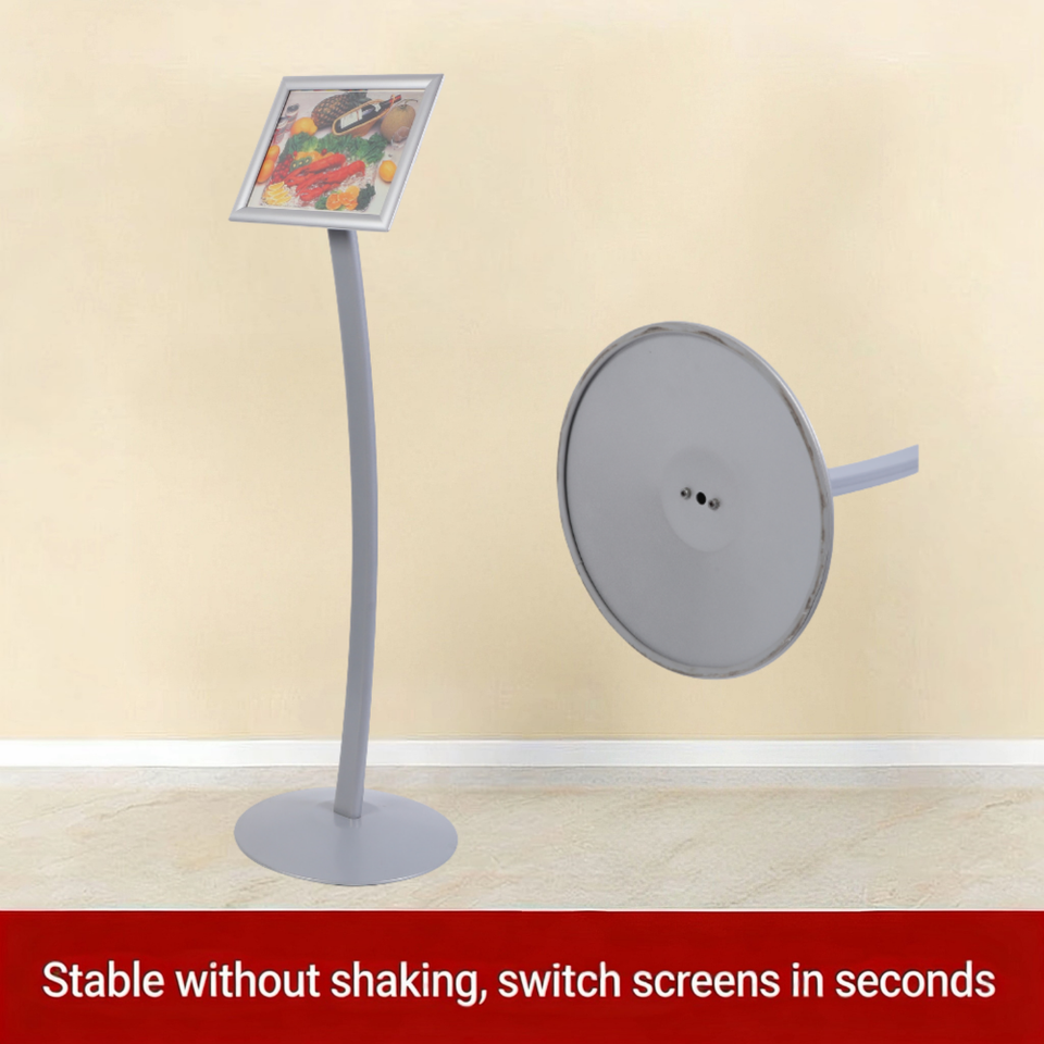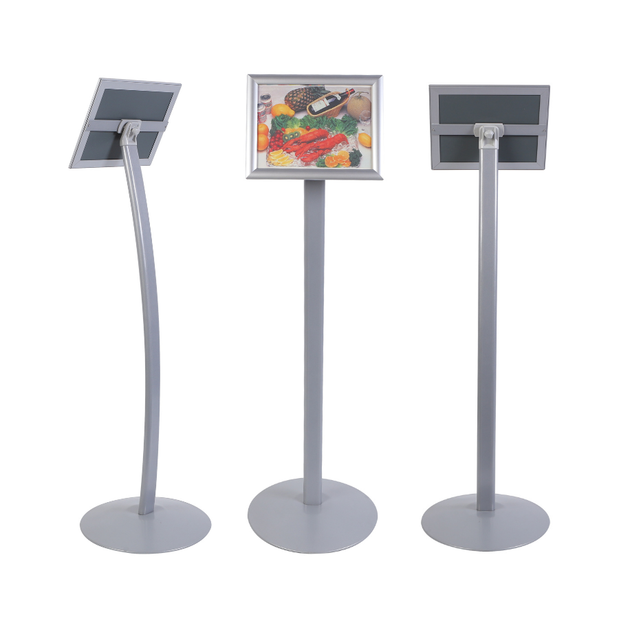 Support d'affiche A4 gris argenté, hauteur fixe, base ronde en fer, réglage d'angle fluide, joint en plastique