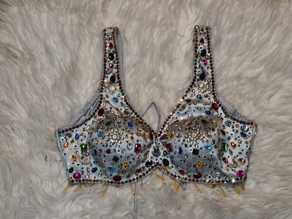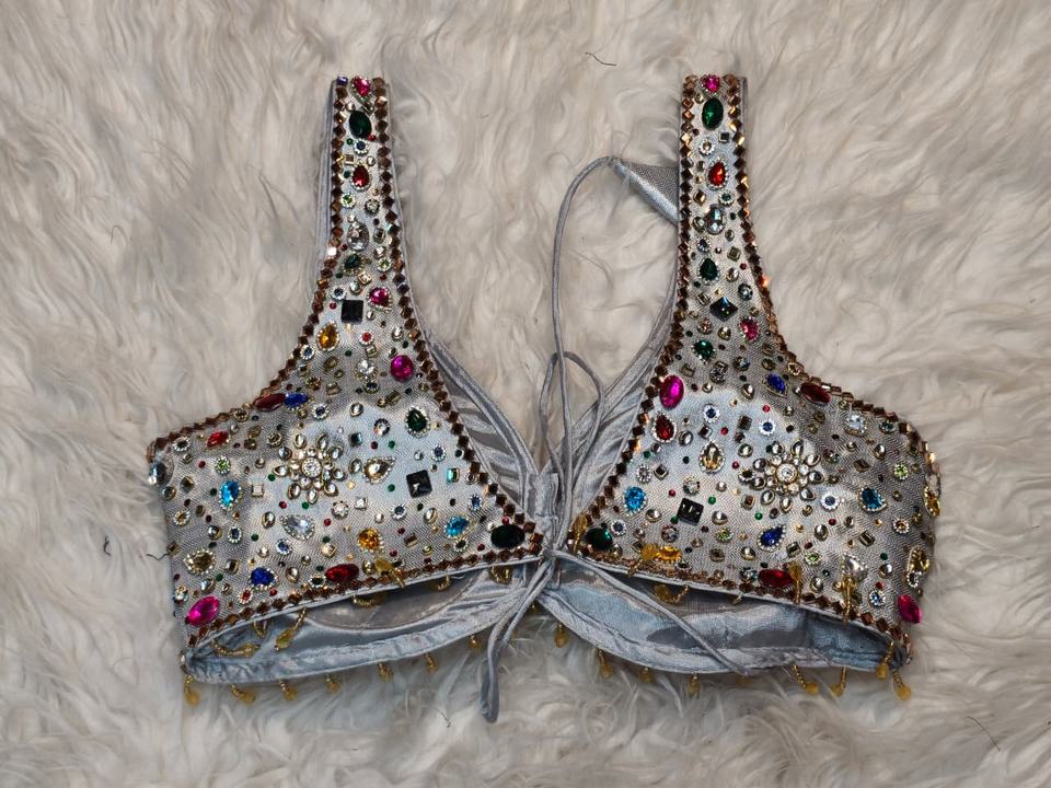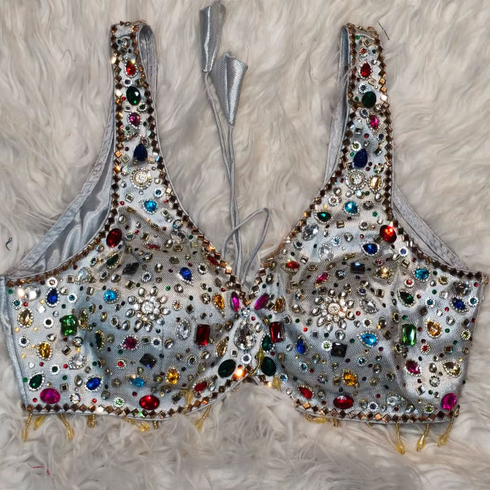 Chemisier de mariée court en satin de soie 100% gris argenté multicolore pour printemps/été et hiver | Blouse de sari de mariage tissée Sweetheart