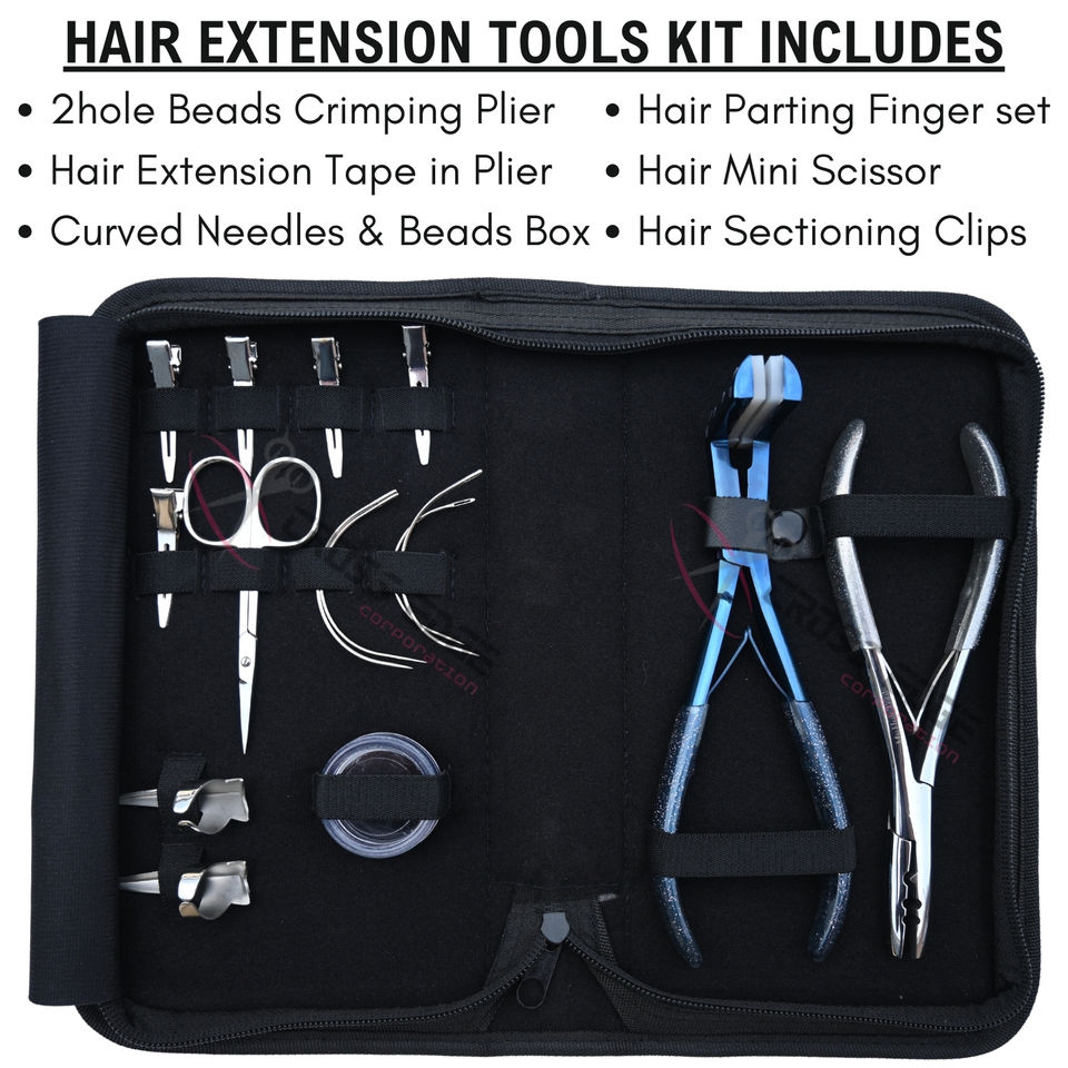 Extensions de cheveux - Pince à crêper et à poser les extensions à 2 trous, 7 pouces, Pince à cheveux pour salon de beauté, Extension de cheveux, boîte de perles, Clips pour doigts