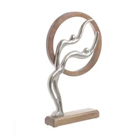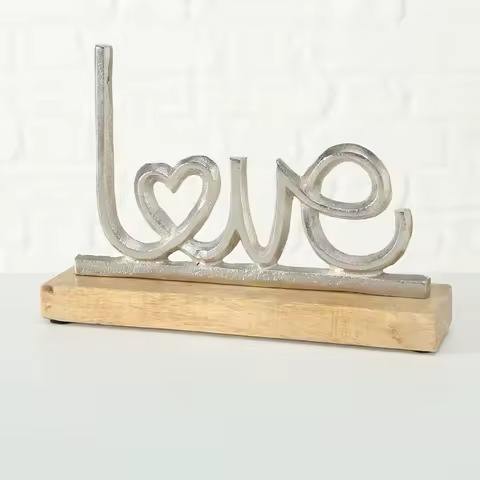 Sculpture en forme de cœur en argent sur cercle en bois, élégante pièce maîtresse décorative pour la maison, le bureau, présentoir de table de luxe