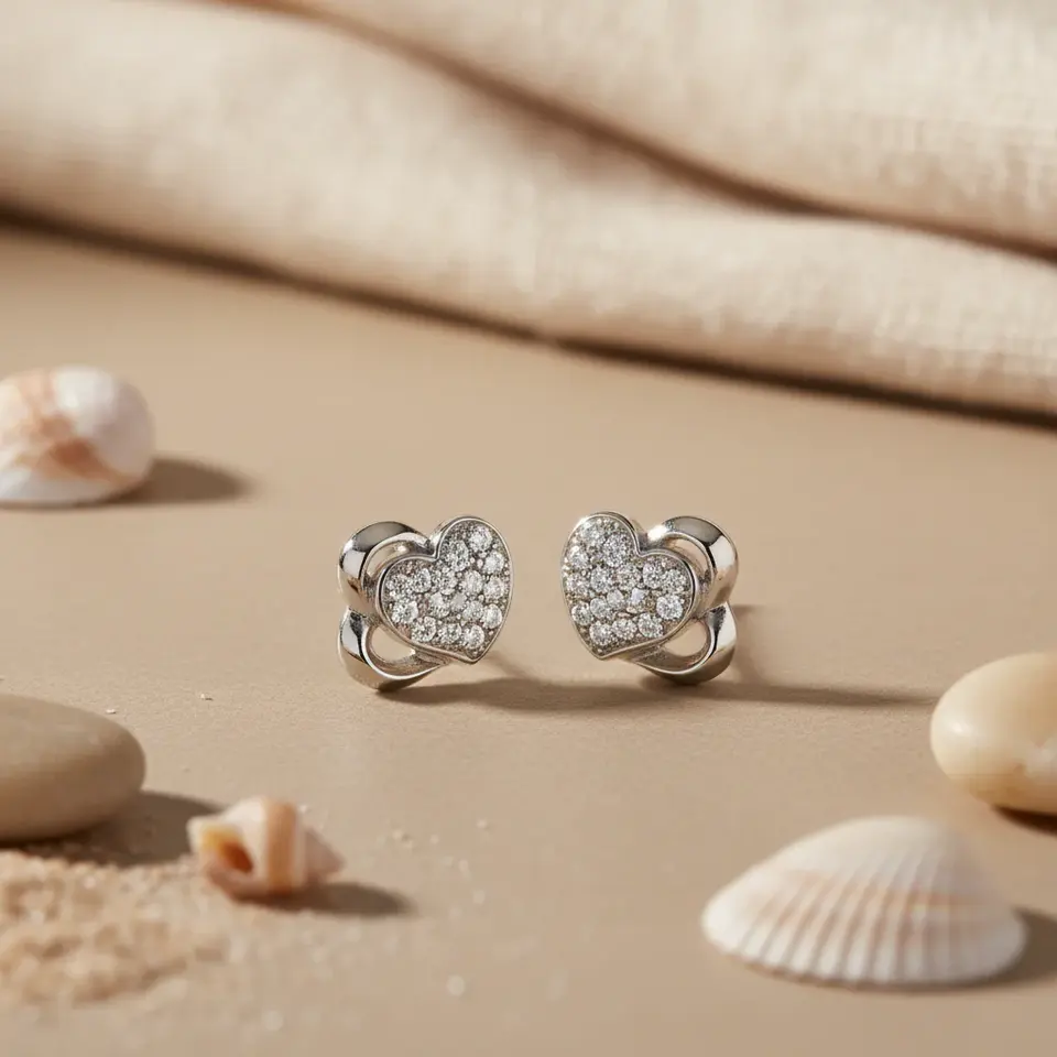 Silver Heart Trendy Stud Earrings for Women Dainty Daily Religious Jewelry with Zircon Brass Gold-Plated Tassel for Parties