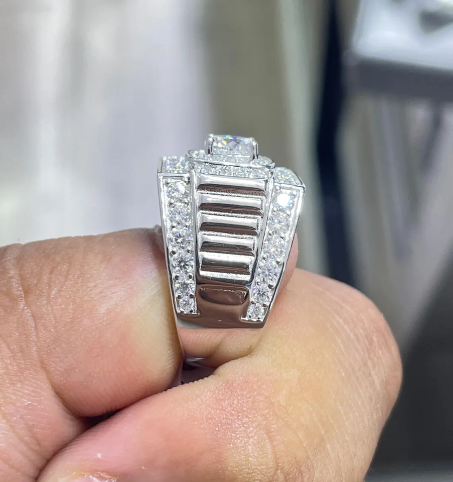 Bague de luxe en argent glacé de style coussin avec pierre centrale brillante