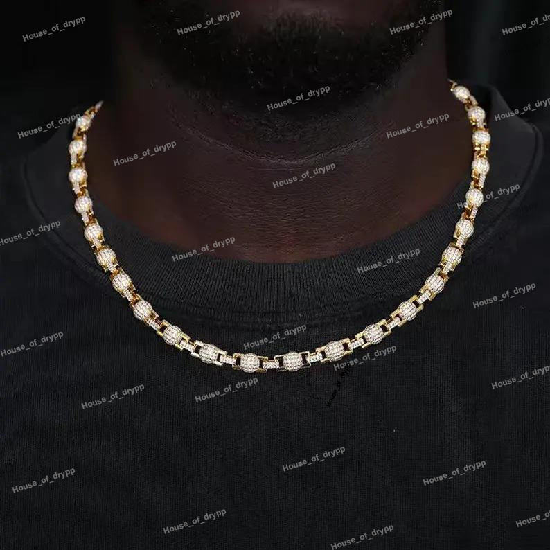 Collier à maillons épais en argent glacé, chaîne hip-hop de luxe en argent, bijoux imposants en argent, cadeau pour soirée en argent