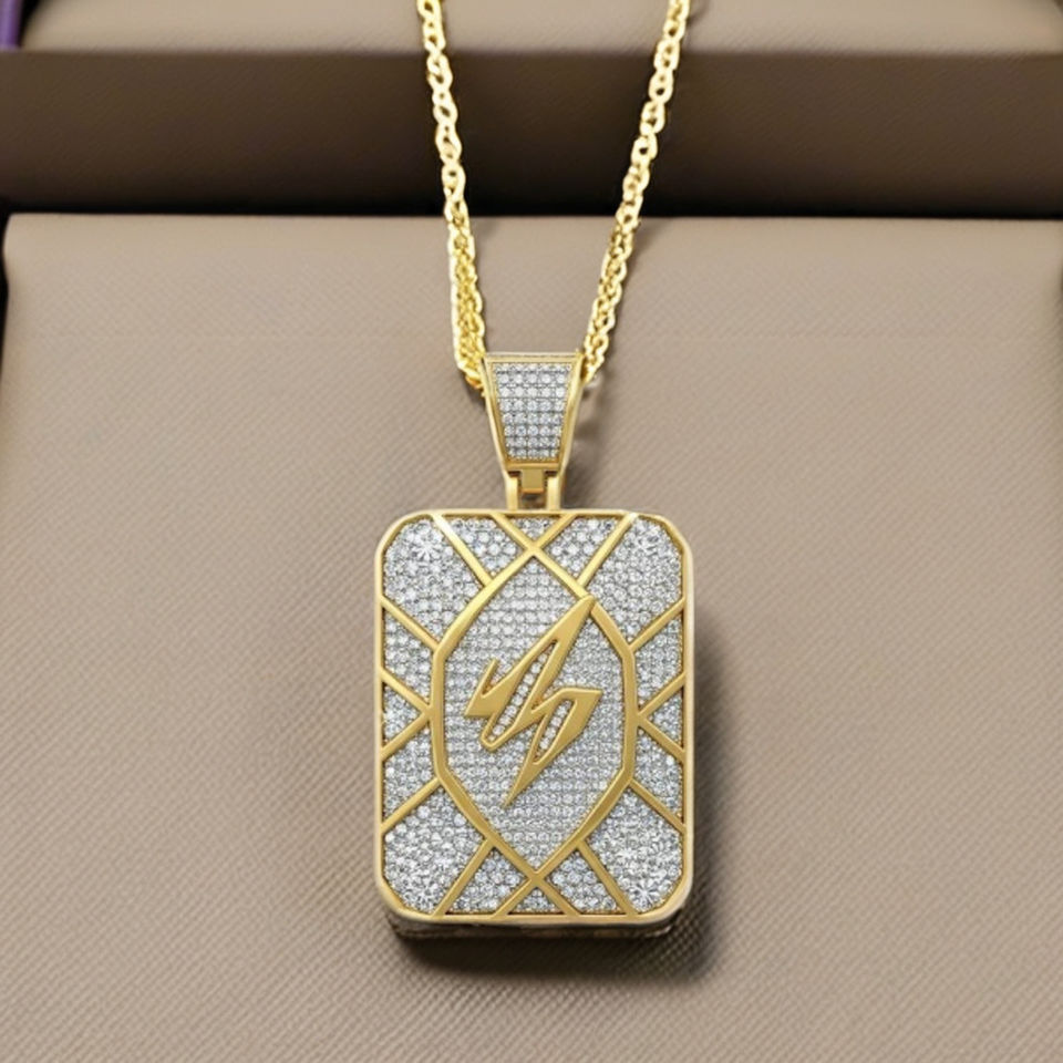 Pendentif Rectangle en argent de laboratoire plaqué or Style Hip Hop bijoux cadeau de mariage hommes femmes pendentifs de mode breloques