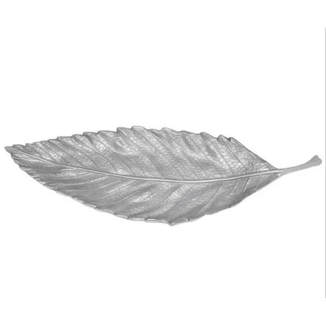 Plateau de service en aluminium recyclé à 100% en forme de feuille de grande taille argentée, plat de service irrégulier, décoration de fête de mariage