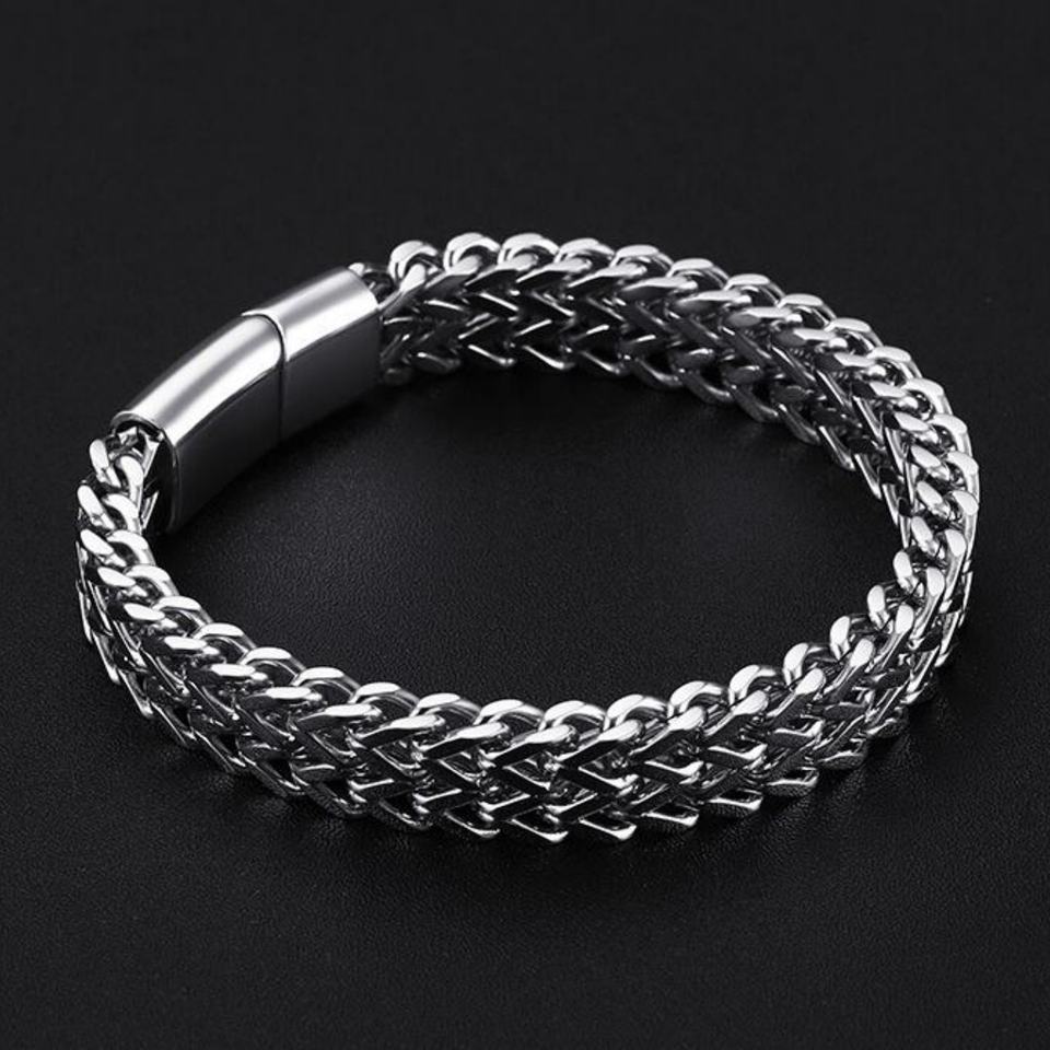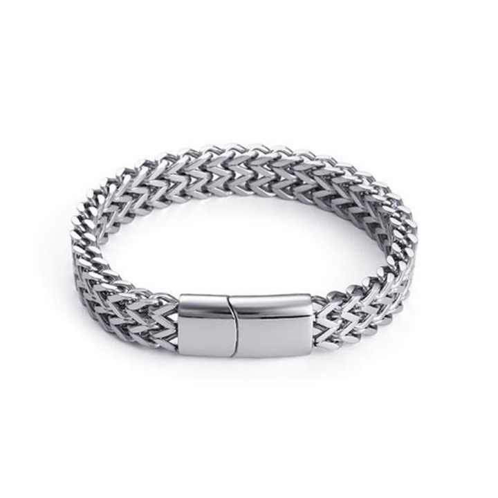 Bracelet lourd pour homme en acier inoxydable massif, bijoux de mode, couleur argent