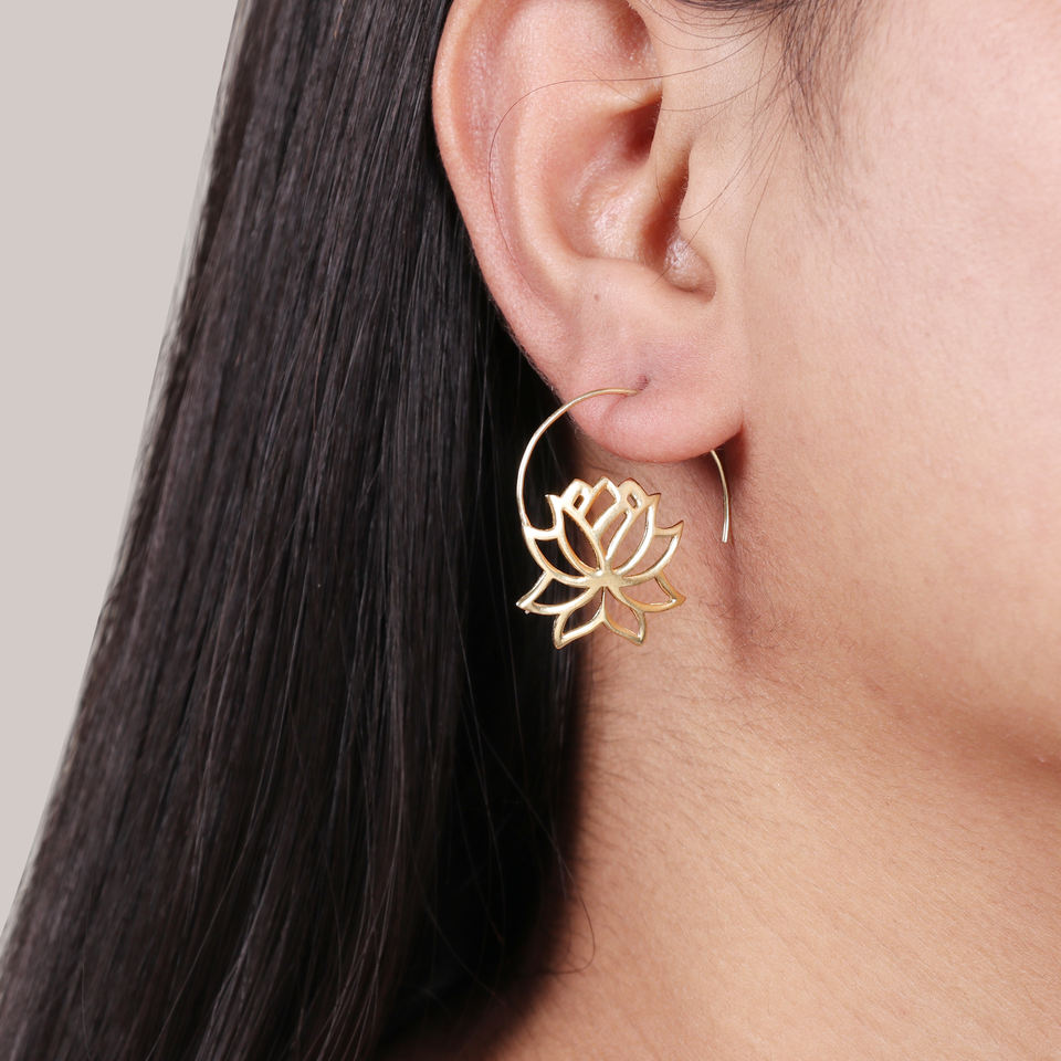 Boucles d'oreilles pendantes en forme de fleur de lotus argentée, style mignon, bijoux unisexes pour femmes, pour mariage, fiançailles, cadeau de Jaipur